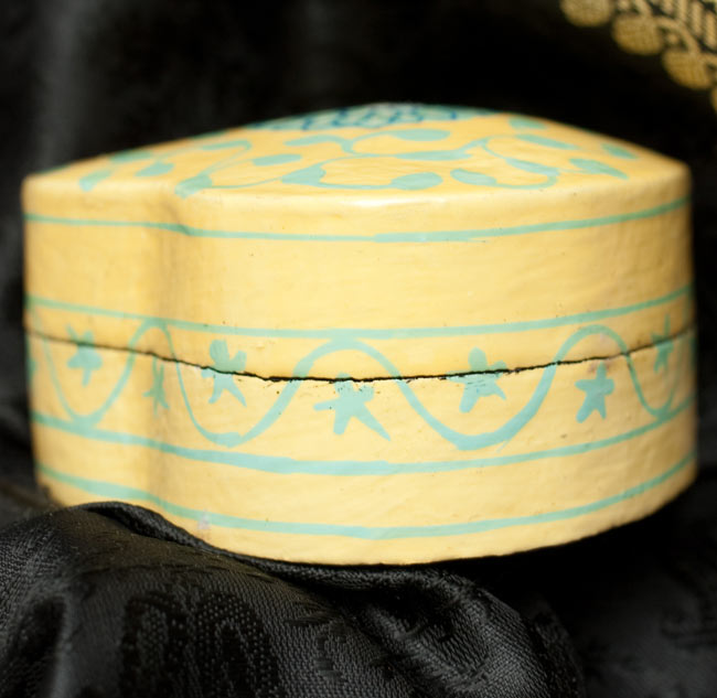 ![カシミールのペーパーマッシュ - ハート型唐草イエロー小物入れ[中] 3 - 横部分の写真です](https://www.tirakita.com/id_cflsp/Photos/id_cflsp_297_3b.jpg)