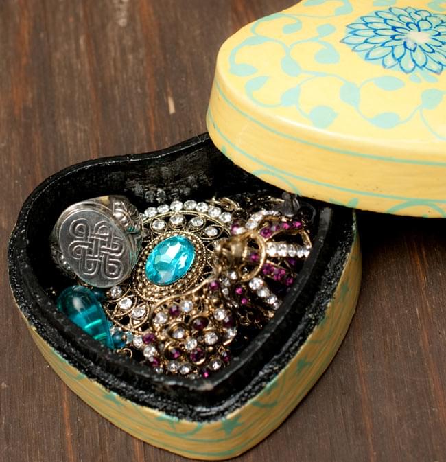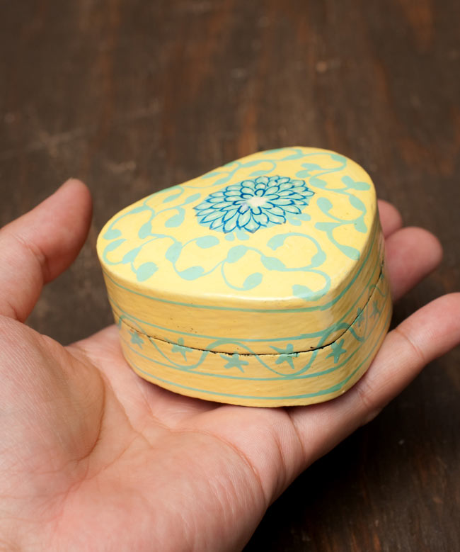 ![カシミールのペーパーマッシュ - ハート型唐草イエロー小物入れ[中] 6 - ピアスや指輪などのアクセサリー等、小物入れにぴったりです。](https://www.tirakita.com/id_cflsp/Photos/id_cflsp_297_6b.jpg)