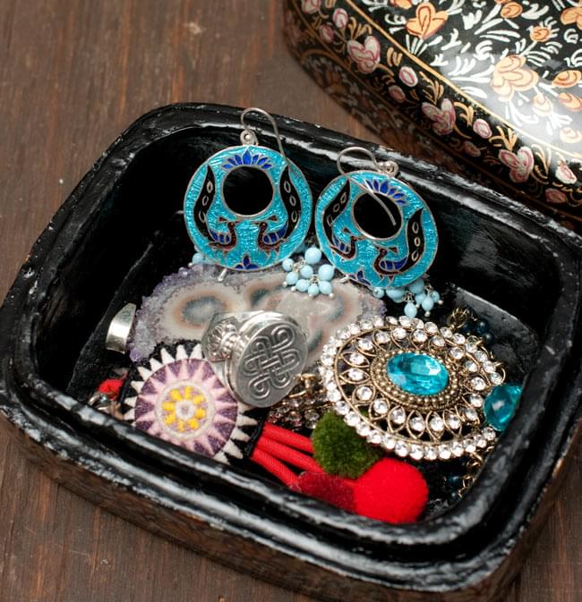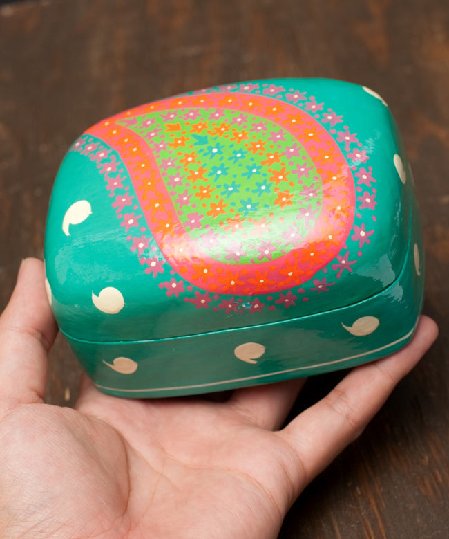 ![カシミールのペーパーマッシュ - グリーンペイズリー小物入れ[大] 6 - ピアスや指輪などのアクセサリーや車の鍵入れ等、小物入れにぴったりです。(以下は同ジャンル品の写真です)](https://www.tirakita.com/id_cflsp/Photos/id_cflsp_309_6b.jpg)