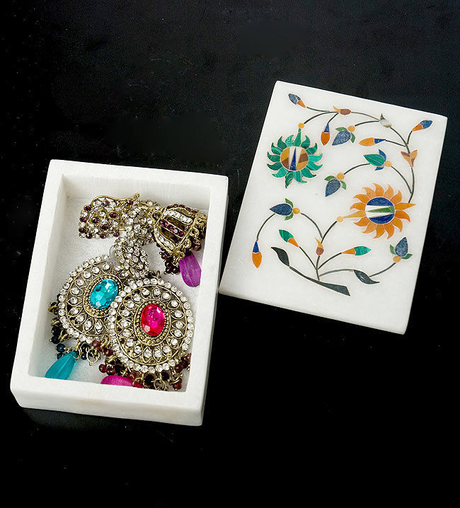 玄関でキーケースとして使用するもよし。お化粧台にアクセサリーケースとして使用するもよし。洗面台などの水回りでも活躍してくれることでしょう。置いておくだけでも空間が華やかになりますので、インテリアとしても最適です。宝石好きの国、インドから届いた素敵な逸品を是非ご堪能下さい!