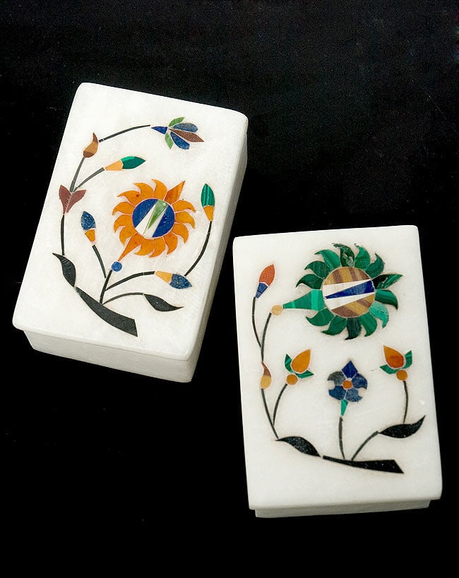 インドの空港で購入した事があり、帰国してからもっと大きなものを買ってくれば良かったと悔やみました。今回、こちらで販売していることを知り、本当に嬉しかったです。8センチの角型、楕円型、ハート型を注文しました。今回は大きさを重視したのと、目線より低い場所に置くので、蓋のみ細工入りにしましたが、目線より高い所におく場合は本体の側面にも細工が入ったものの方が素敵だと思います。写真と殆ど変わらない商品でしたので、逆にびっくりしました。長年、どこかで入手できないかなと思っていたので、本当に嬉しいです。とても素敵です!
