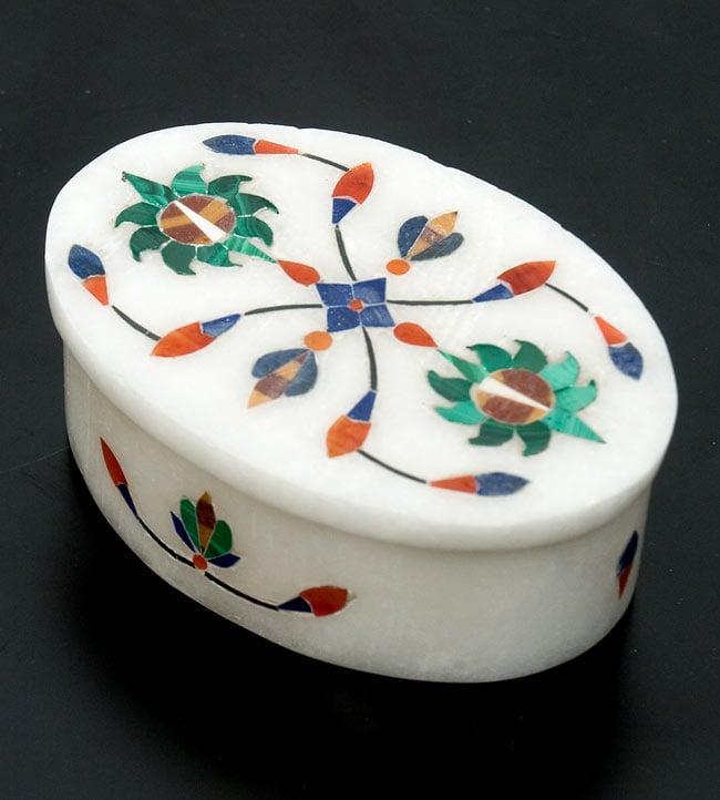 ![【楕円型】マーブルストーンの小物入れ[約8cm] 2 - 中央の模様を拡大しました。白大理石にカラフルな貴石が散りばめられています。](https://www.tirakita.com/id_cflsp/Photos/id_cflsp_326_2b.jpg)