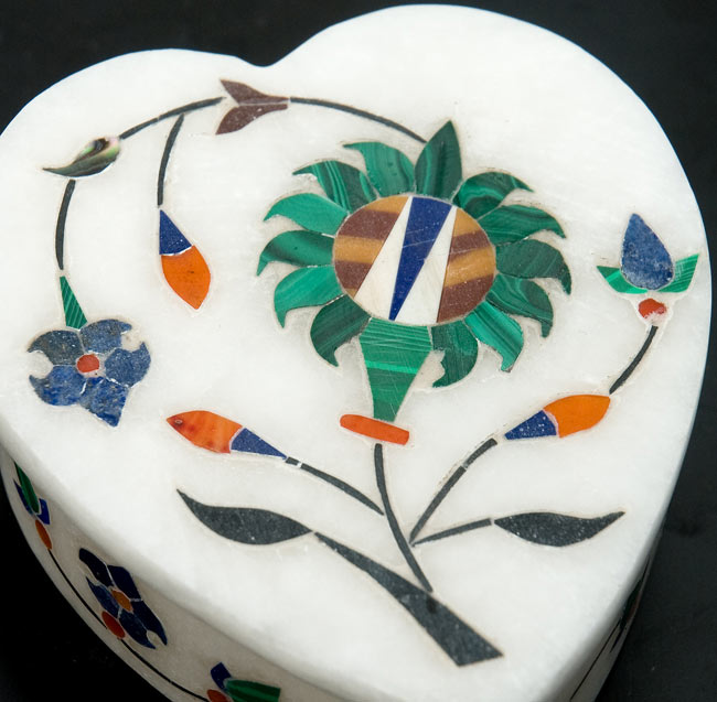 ![【ハート型】マーブルストーンの小物入れ[約8cm] 2 - 中央の模様を拡大しました。白大理石にカラフルな貴石が散りばめられています。](https://www.tirakita.com/id_cflsp/Photos/id_cflsp_328_2b.jpg)