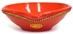 淵の部分にくぼみがついており、インドではそこから芯を出して火をつけ、ランプに使ったりします。お好みで小物入れや灰皿等としてお使いいただけます。