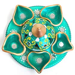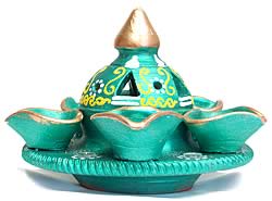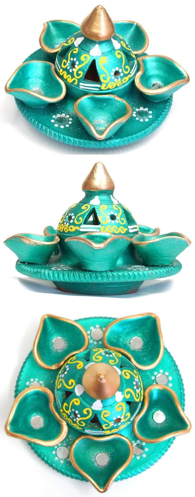 5個の小さな皿が付いており、インドではそこから芯を出して火をつけ、ランプに使ったりします。