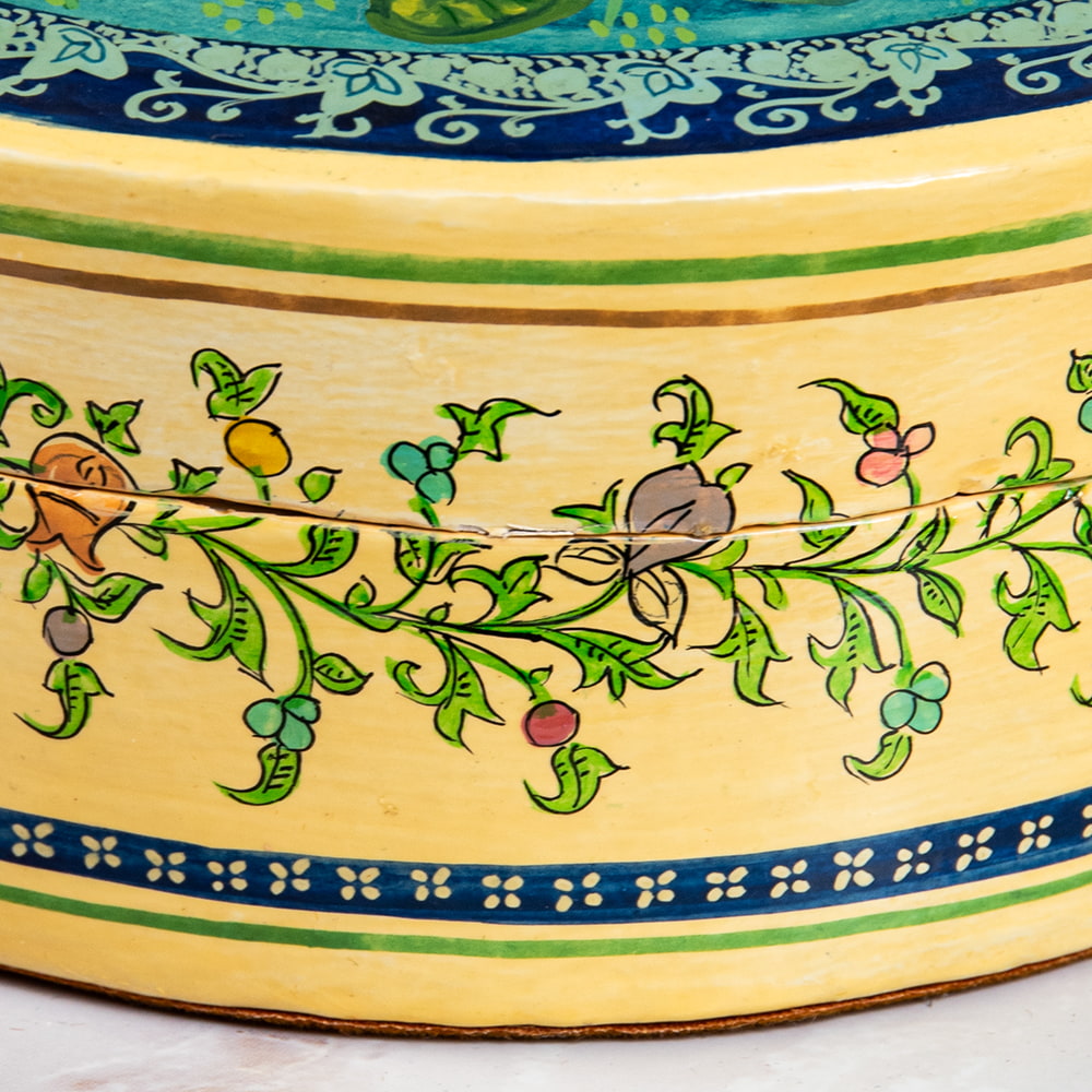 恐るべき筆致で描かれたカシミールペイントが充溢する、素晴らしい芸術作品がインドの極北から山と海を越えて日本に届きました。 見るものを圧倒する無限の細部に思わず溜息が漏れるほどの逸品。細部に書き込まれたディティールの素晴らしさは一生ものと言っても差し支えないまさに第一級のクオリティです。■インドの人間国宝の手による一点もの