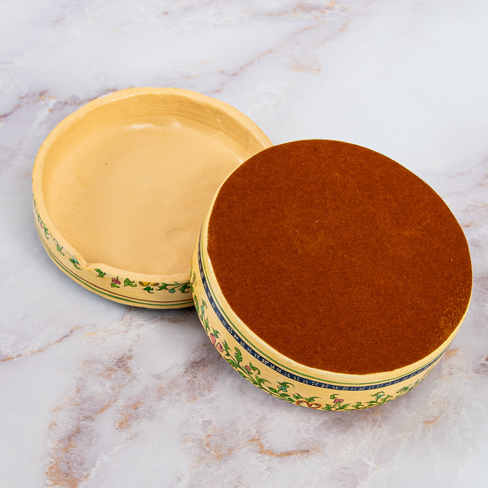 紙を小さく小さくちぎり糊で合わせた型に、職人による美しい装飾を施したカシミール地方伝統のペーパーマッシュ製品。ペーパーマッシュの歴史は、15世紀ごろまで遡ります。その頃サマルカンドで投獄されていたカシミール王子が、カシミールへ戻った際に作られるようになったそうです。