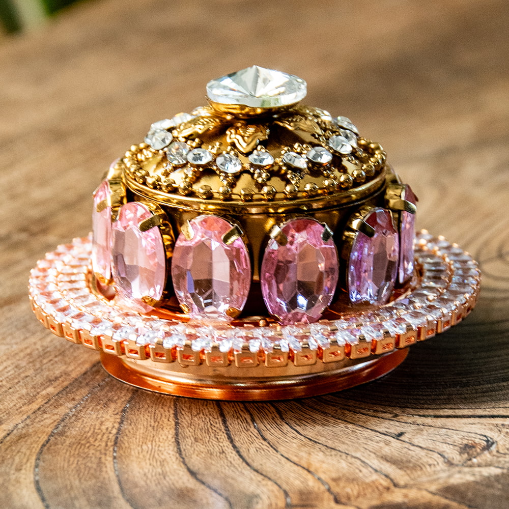 [大感謝祭セール]ジュエル装飾 インドの小物入れ風インテリアボックス 直径7.5cm程度