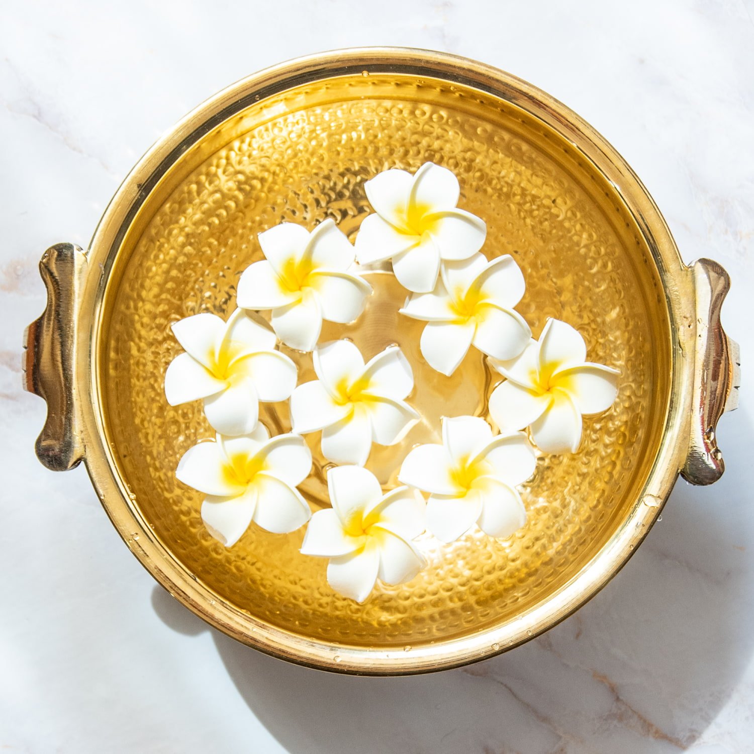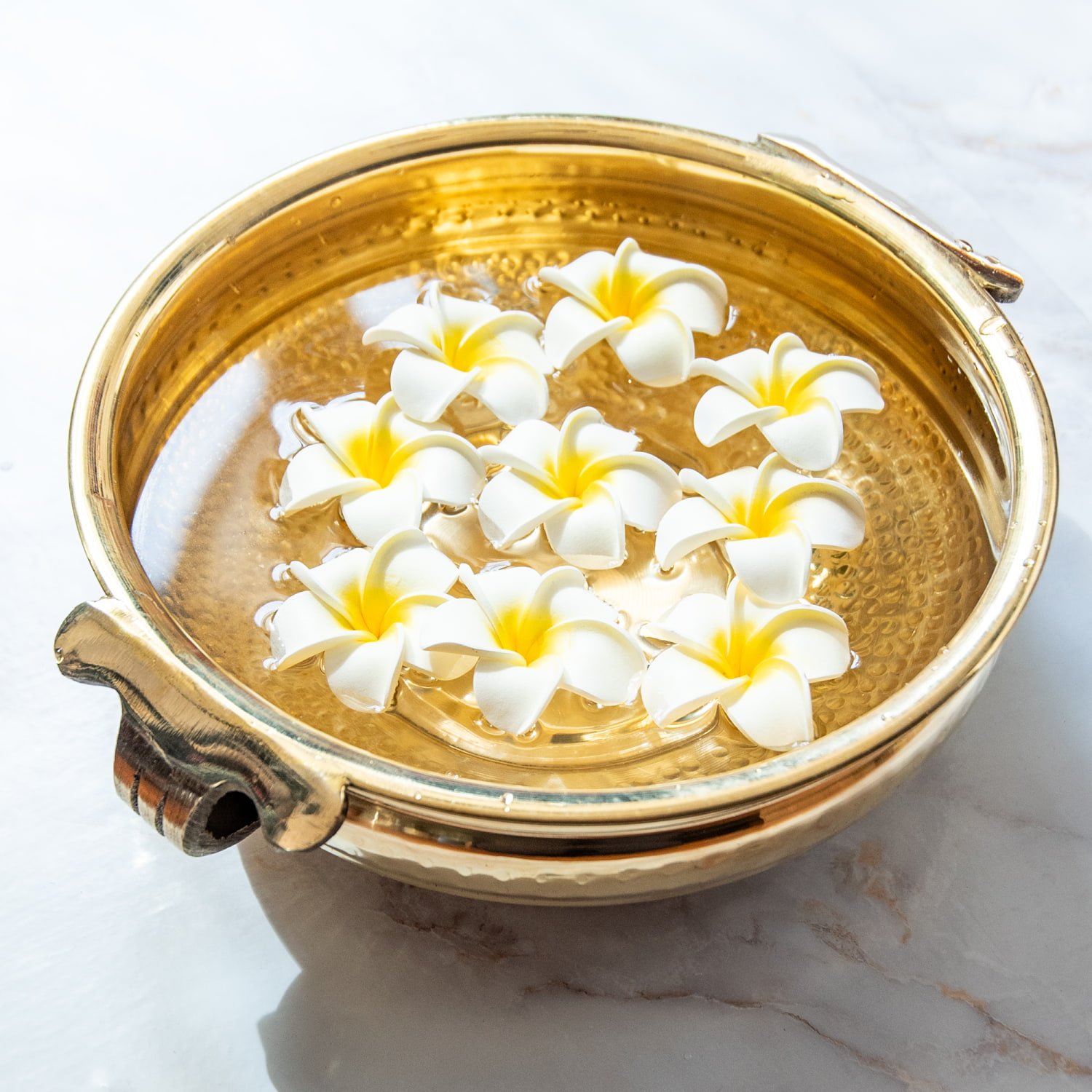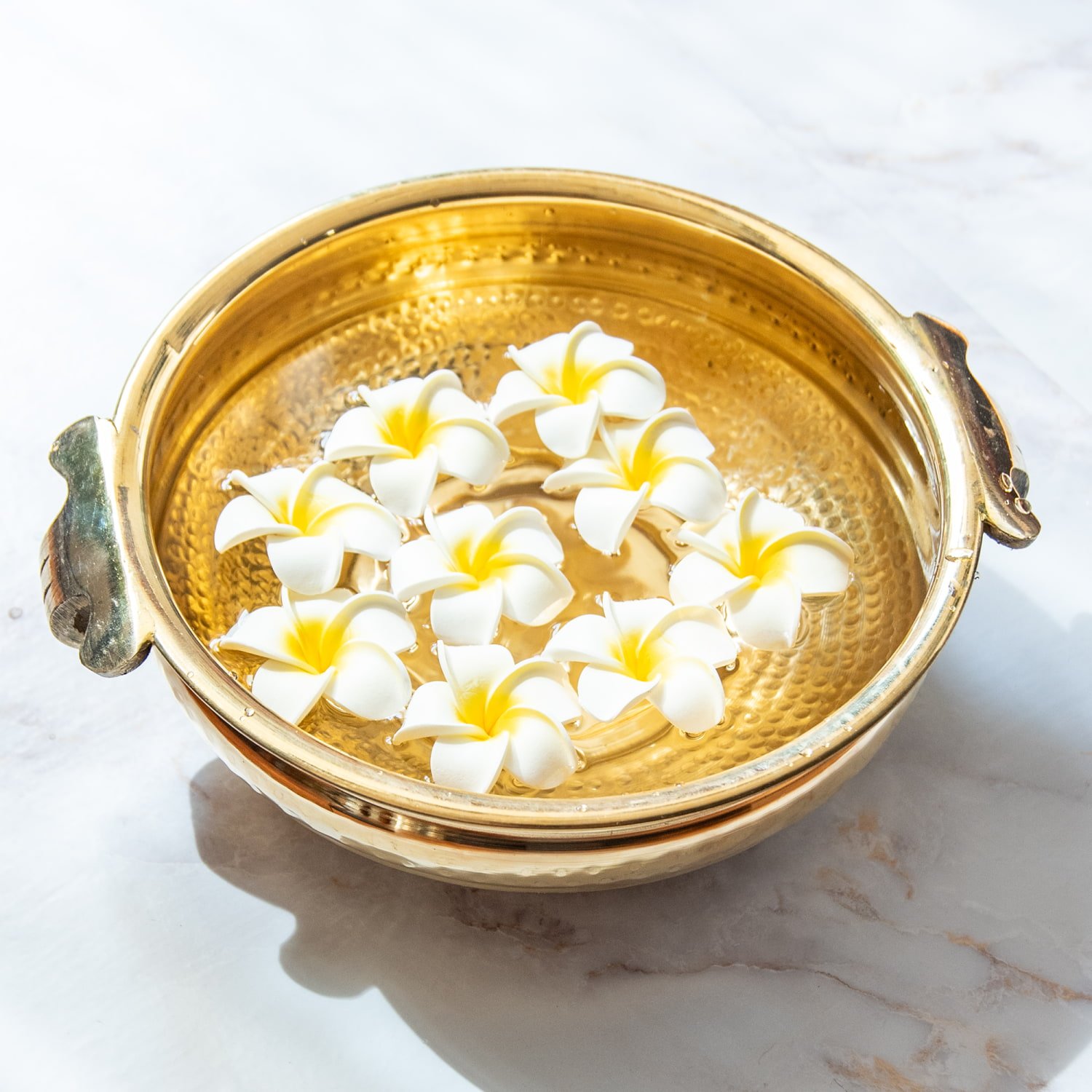 南インド・ケーララ州で古くから使われてきた伝統の器「ウルリ(Uruli)」。本来は青銅や真鍮で作られ、アーユルヴェーダの薬草を煎じたり、儀式の供物を調理したりする際に用いられてきました。その丸く開いた形は「豊かさと調和」を象徴し、寺院や家庭では吉祥の器として扱われています。現代では、ウルリは「癒しと浄化」の象徴として、玄関やリビング、スパ空間の装飾に用いられるようになっています。水を張って花びらを浮かべ、南インドの伝統的な迎え花“プーカラム”のように華やかな雰囲気を演出します。