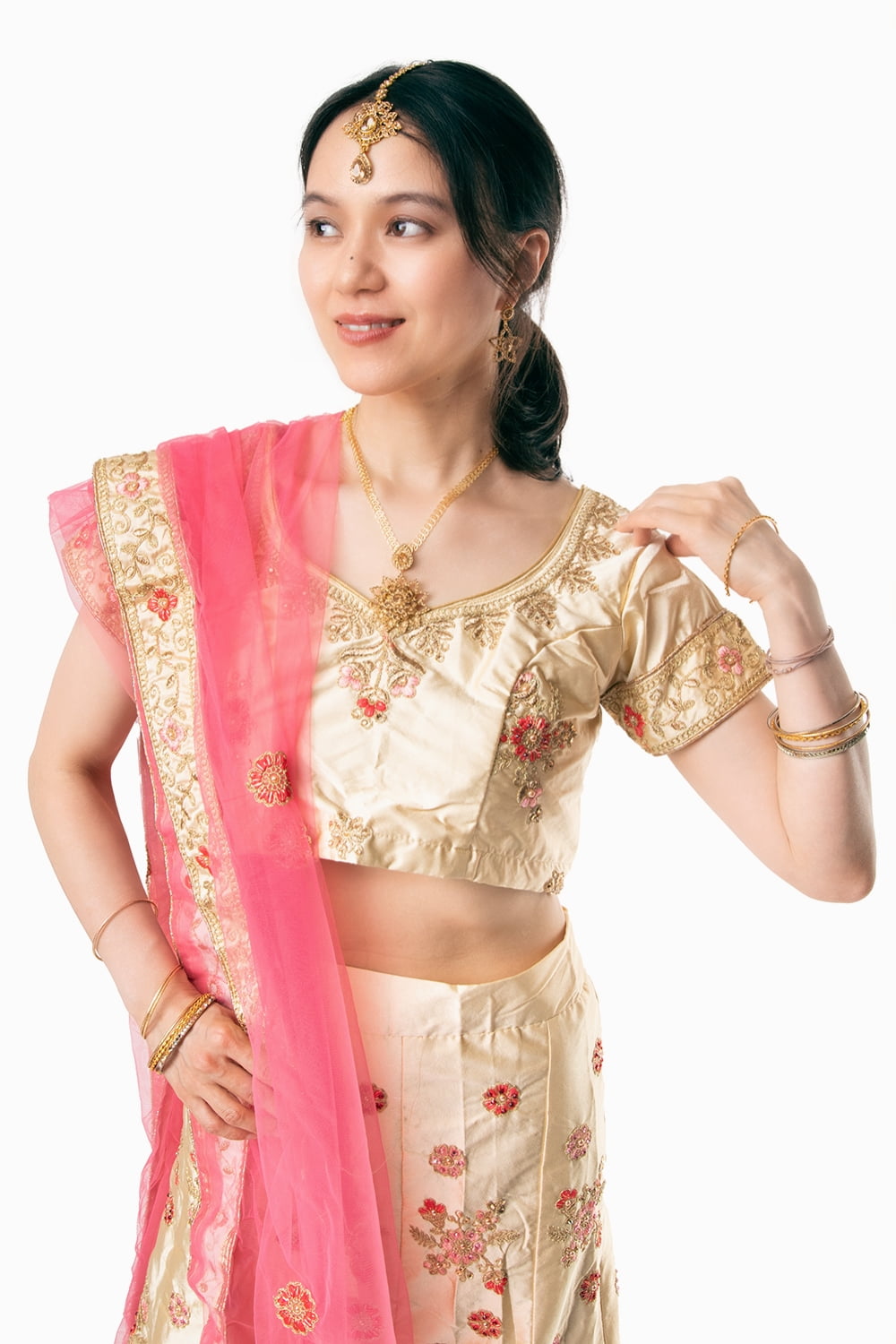 【1点物】インドのレヘンガドレスセット - ホワイト×ピンクの類似商品