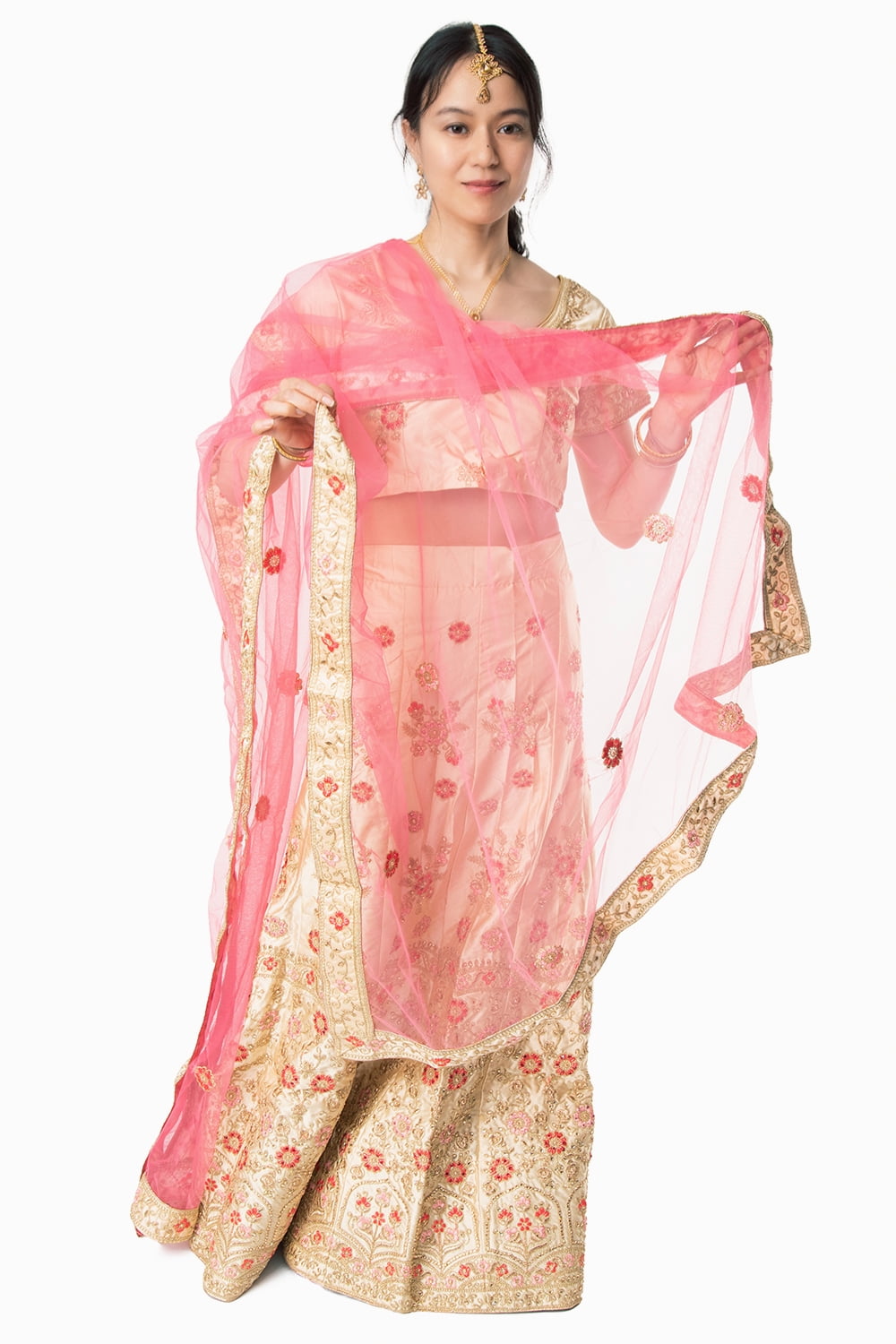 【1点物】インドのレヘンガドレスセット - ホワイト×ピンクと類似商品の評価 (合計:1件)