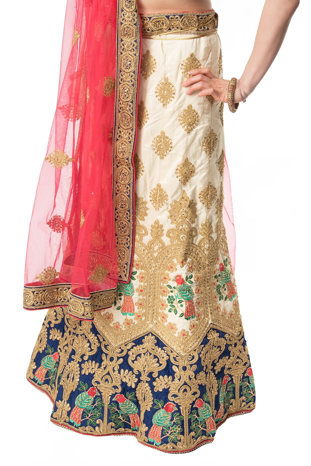 【1点物】インドのレヘンガドレスセット - ホワイト
