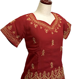 柔らかな肌触りの上質な布に、細かい刺繍やビーズをを一本一本手で刺していったとてもきれいなインドのドレス。パーティーの時や、何か特別なとき、おしゃれしたいときにお奨めの一着です。