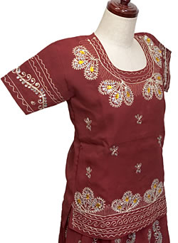 柔らかな肌触りの上質な布に、細かい刺繍やビーズをを一本一本手で刺していったとてもきれいなインドのドレス。パーティーの時や、何か特別なとき、おしゃれしたいときにお奨めの一着です。