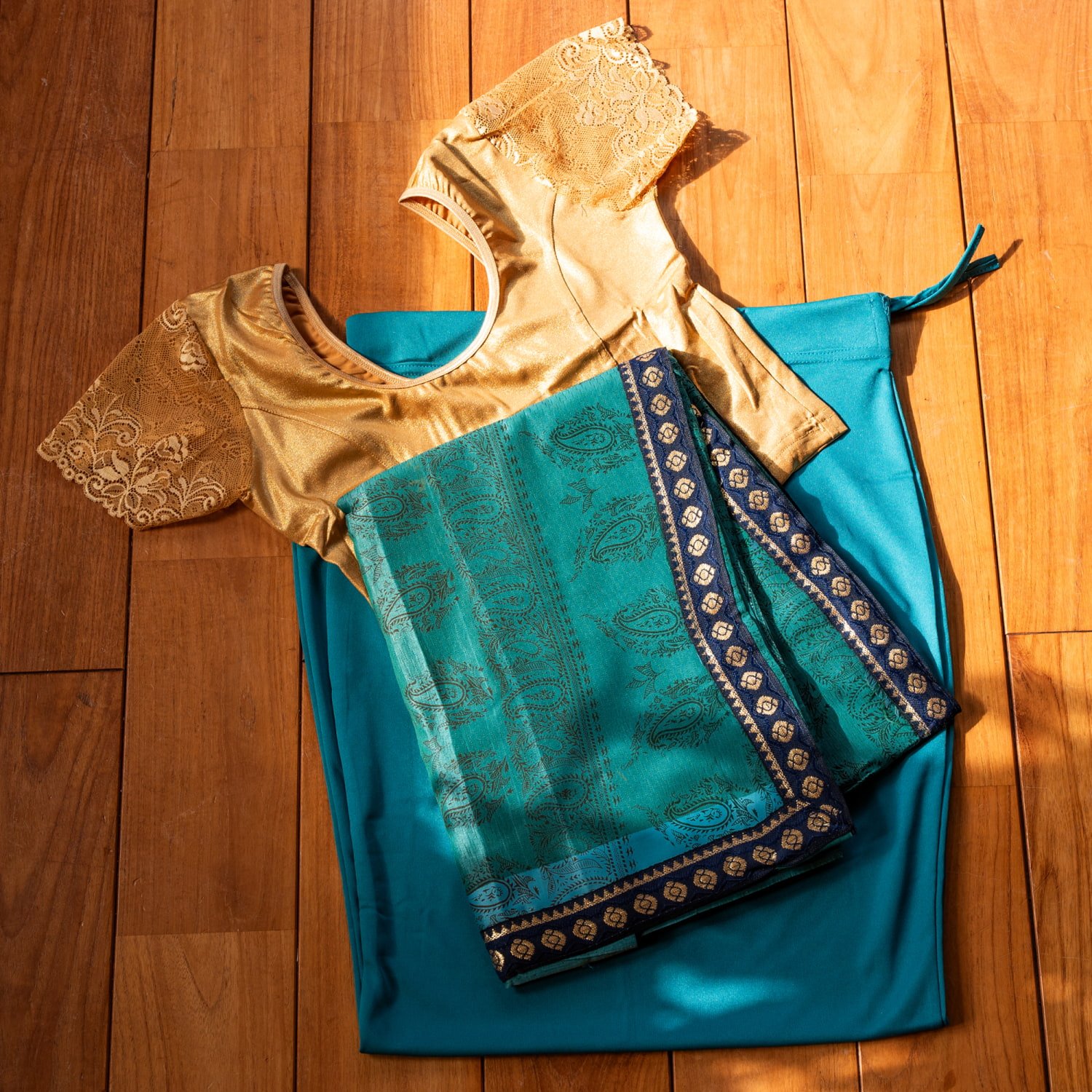 サリー、チョリ、ペチコートは色を合わせてコーディネート