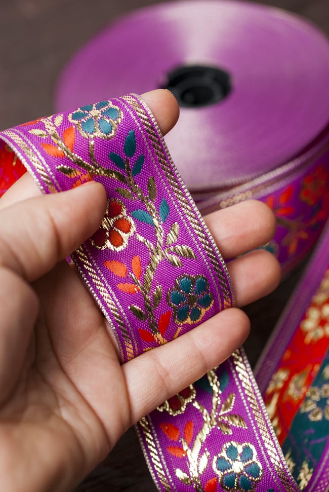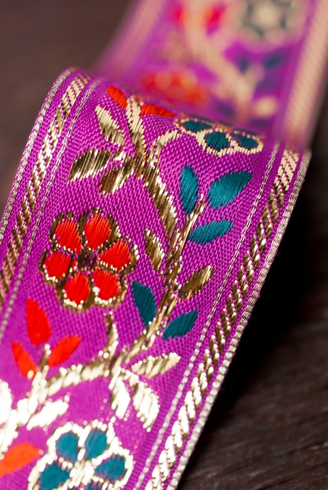 金糸入りチロリアンテープ- メーター売り(太幅 約4cm) - 赤紫の類似商品