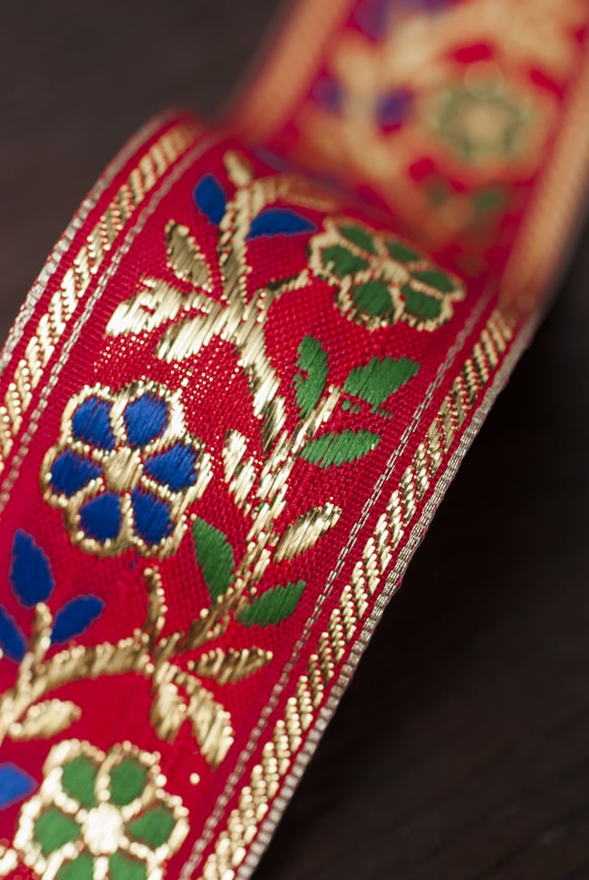 金糸入りチロリアンテープ- メーター売り(太幅 約4cm) - 赤色