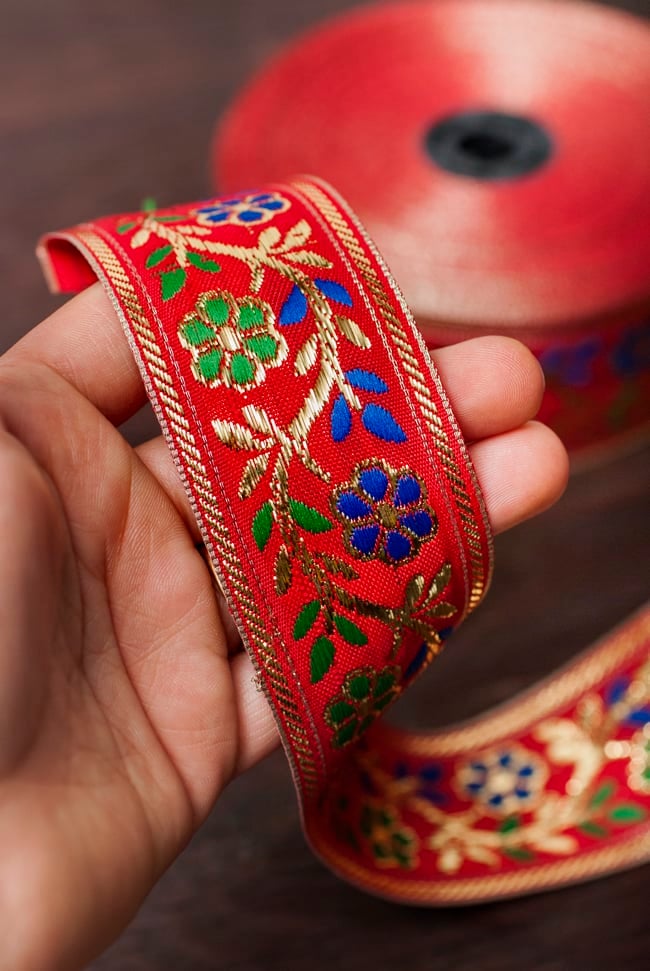 金糸入りチロリアンテープ- メーター売り(太幅 約4cm) - 赤色の評価 (合計:1件)
