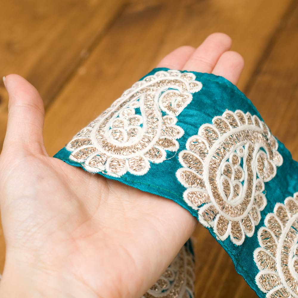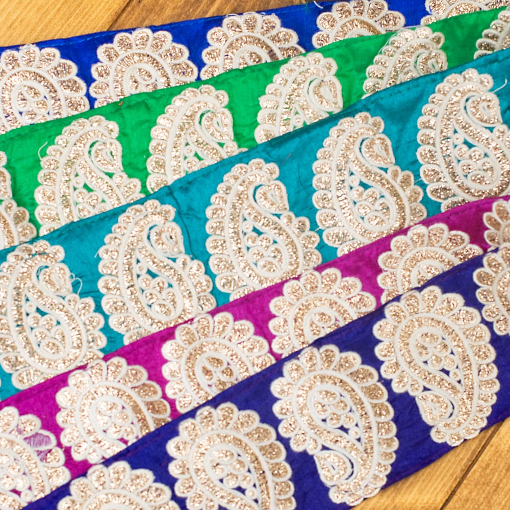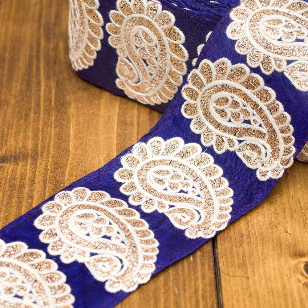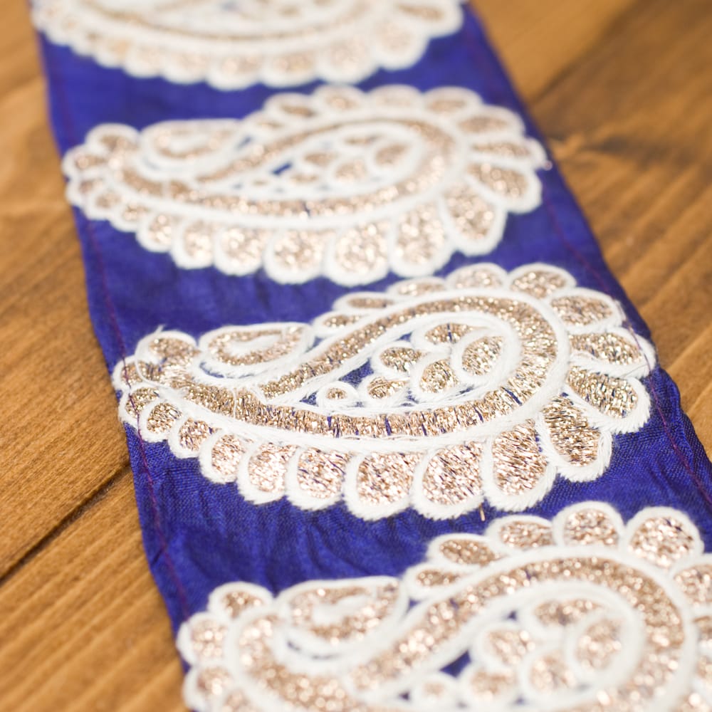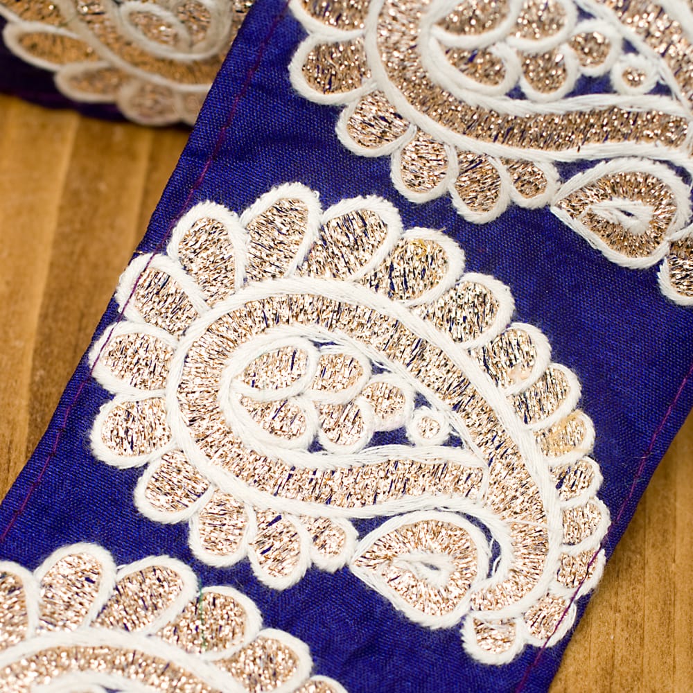 金糸ペイズリー柄チロリアンテープ(メーター売り・幅約8cm) - ネイビー 通販店