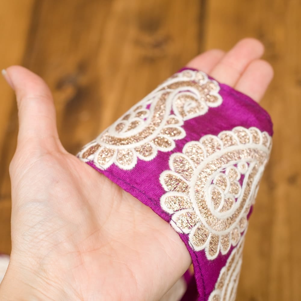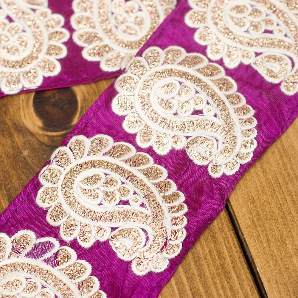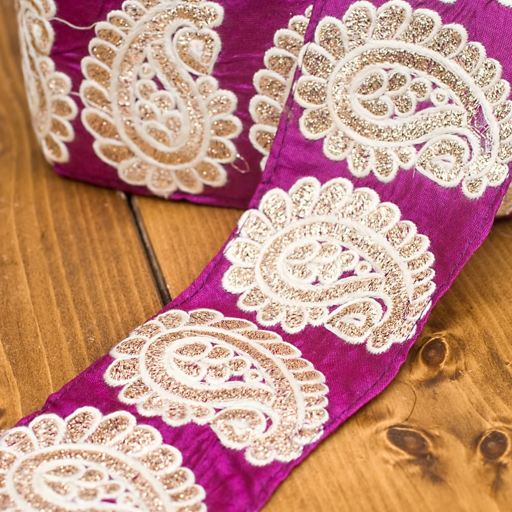 金糸ペイズリー柄チロリアンテープ(メーター売り・幅約8cm) - パープル 通販店