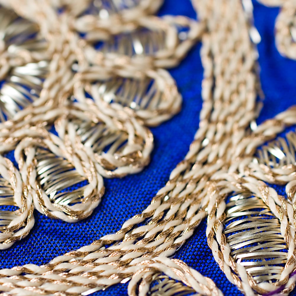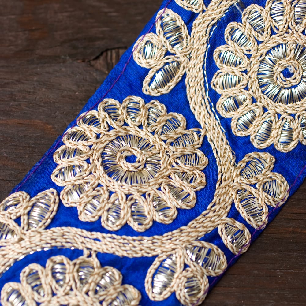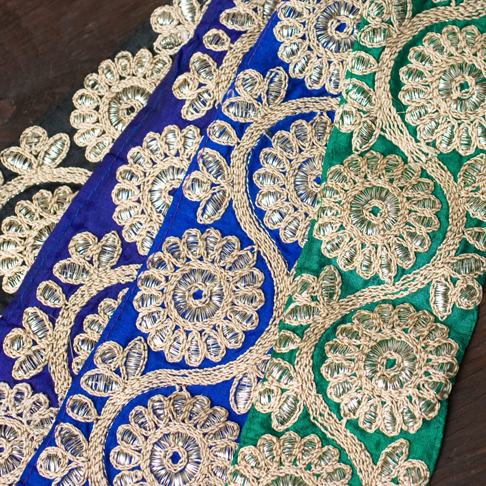 インド人はサリーのすそがボロボロにならないよう、サリーがより綺麗に見えるようにサリーの下の部分、地面に当たる部分に縫い付けて使います。「チロリアン」とはもともとヨーロッパの地方名に由来しているのですが、インドではサリーを飾るために特に独自の発展を遂げてきました。■金糸刺繍が美しい