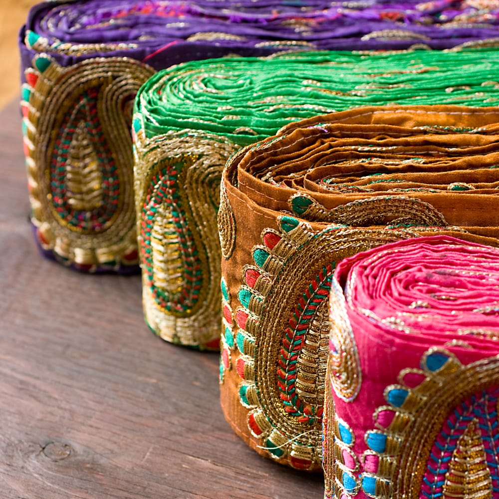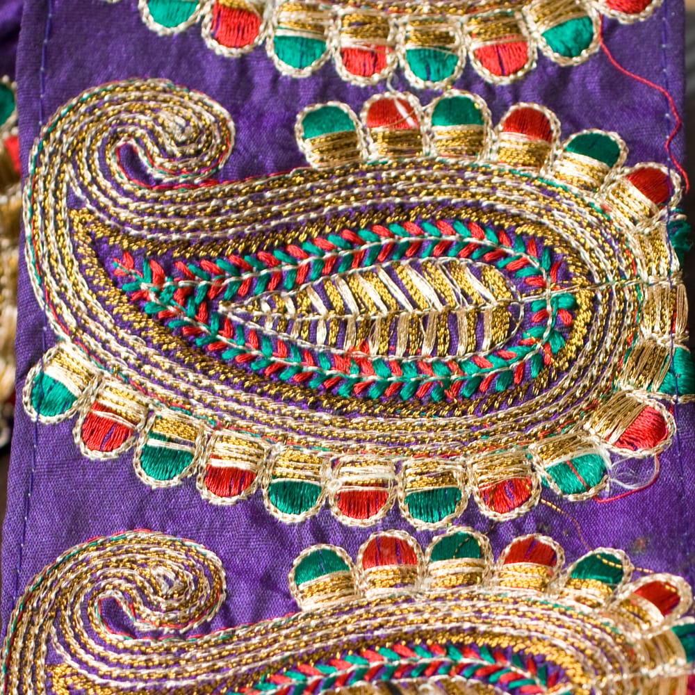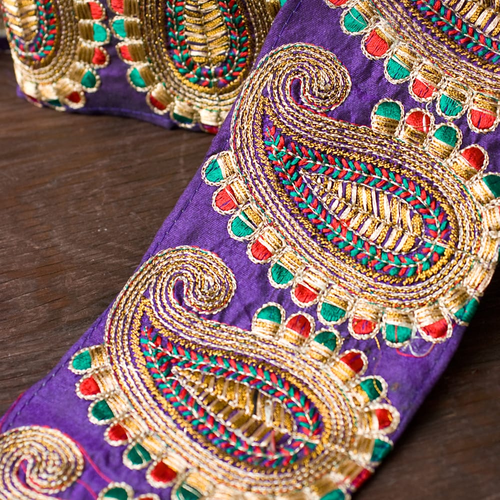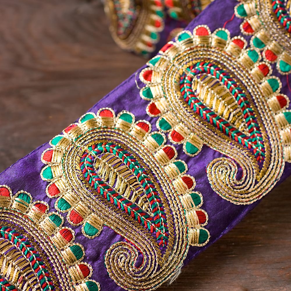金糸ペイズリー柄チロリアンテープ(メーター売り・幅約10cm)- パープル 通販店
