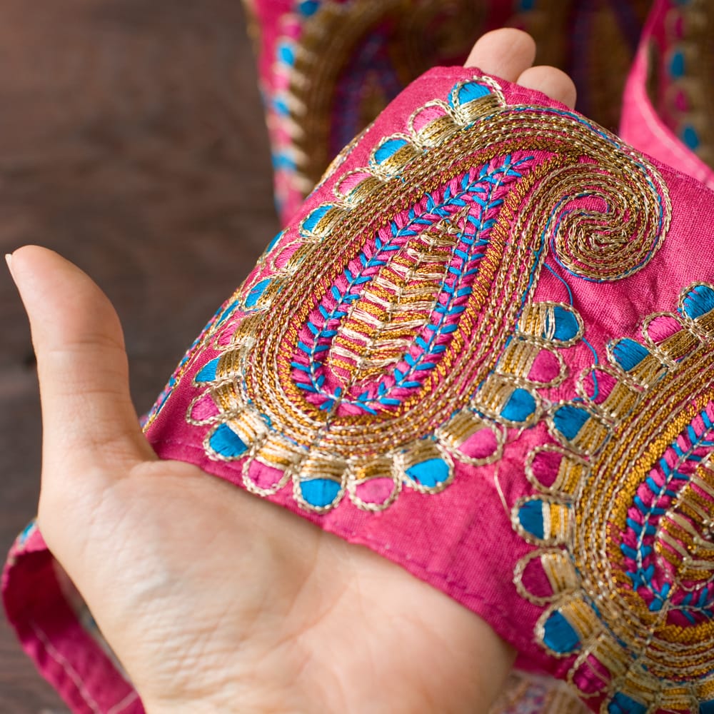 インド人はサリーのすそがボロボロにならないよう、サリーがより綺麗に見えるようにサリーの下の部分、地面に当たる部分に縫い付けて使います。「チロリアン」とはもともとヨーロッパの地方名に由来しているのですが、インドではサリーを飾るために特に独自の発展を遂げてきました。■金糸刺繍が美しい