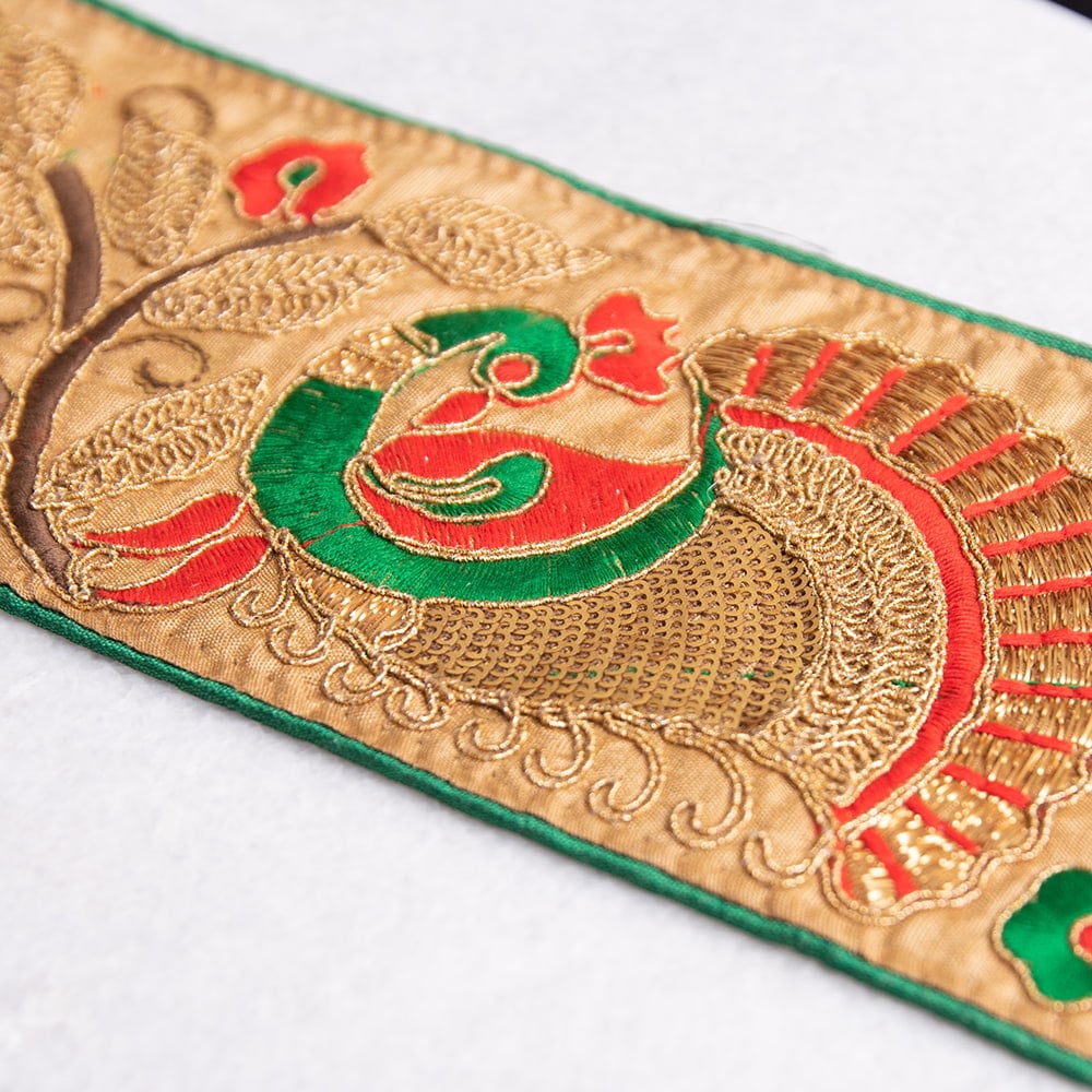 チロリアンテープ - ロール売 【極太幅9.8cm】 - 孔雀の愛 ゴータ刺繍