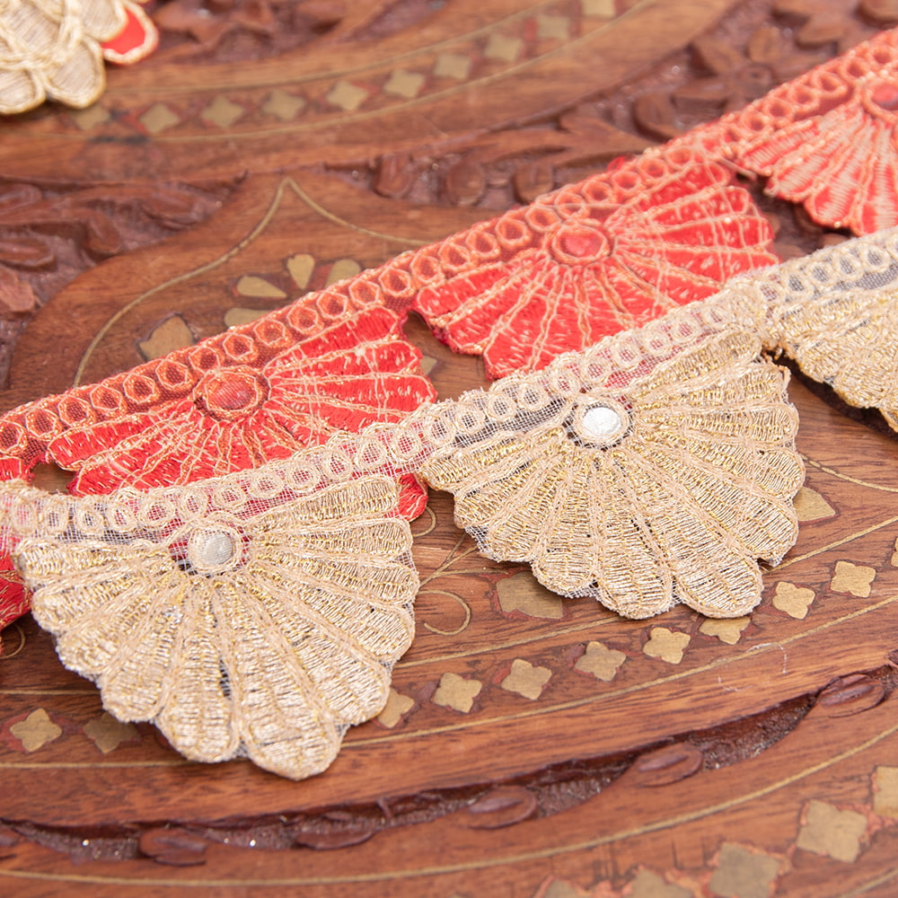 〔メーター売り〕チロリアンテープ メーター売 - 金糸が美しい 更紗模様のゴータ刺繍〔幅:約4cm〕 - ステンドグラス 通販店