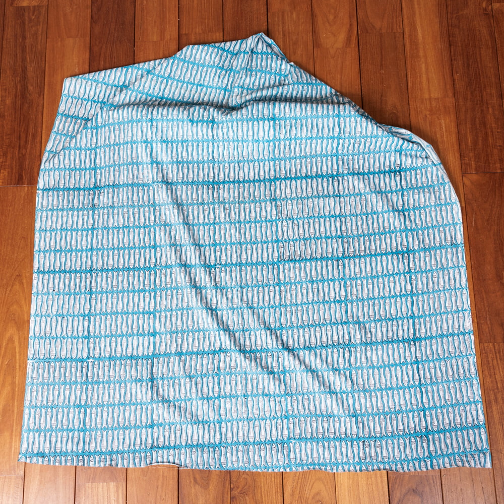 〔1m単位切り売り〕ジャイプル 職人手作り木版染め 色彩美しいボタニカルデザイン おしゃれ 生地 花柄 テーブルクロス 刺繍素材などへ お魚 フィッシュ柄 魚群〔幅約109cm〕 - ブルー系の商品写真 8枚目 類似サイズ品を1m切ってみたところです。横幅がしっかりあるので、結構沢山使えますよ。