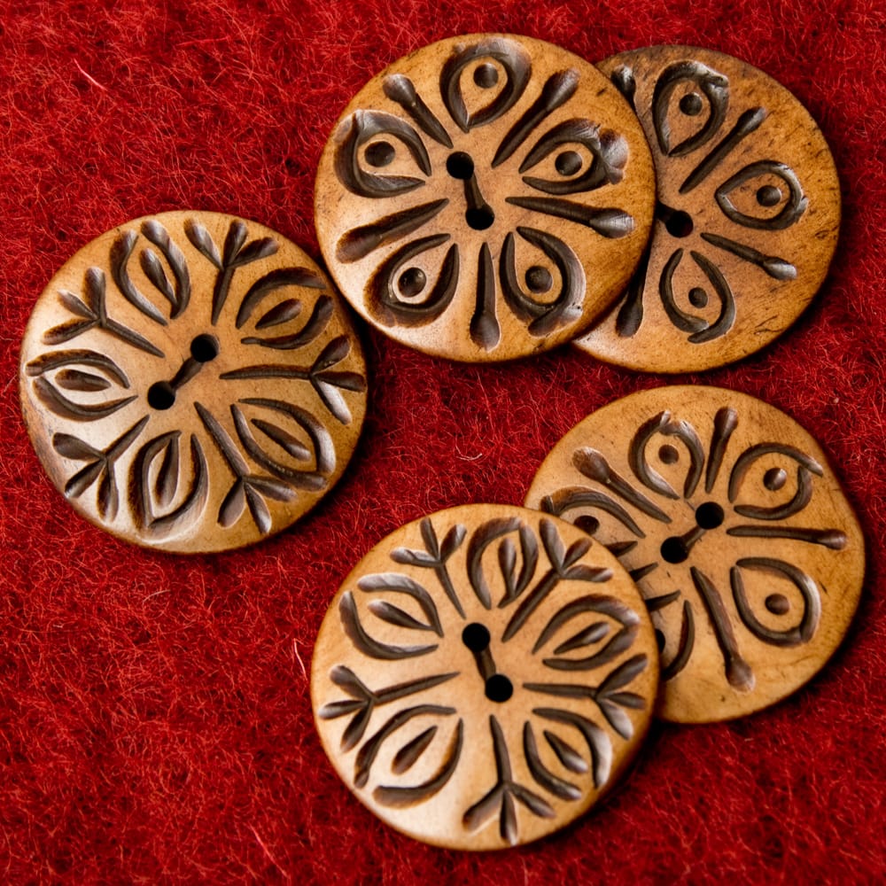水牛の角に 一つ一つ模様を掘った 手作りのボタンです。
