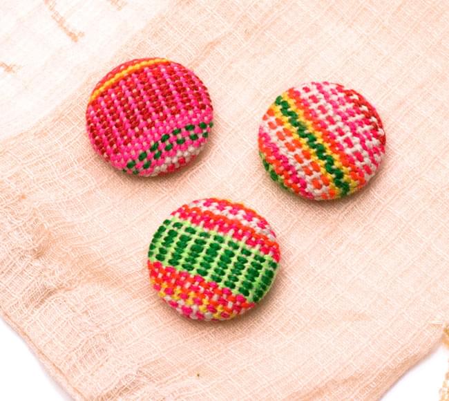 モン族の刺繍ボタン【直径:25mm 3個セット】 - ネオン系の類似商品