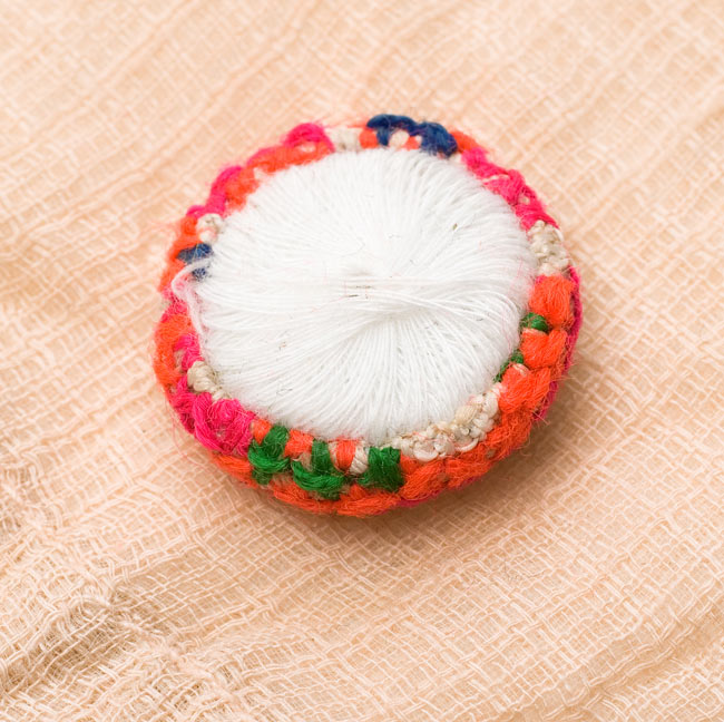 裏面は、糸をくくれば簡単に付けられるデザインとなっているので、どんなものもあっという間に、オリジナルエスニックの完成です!シンプルなTシャツやパンツのアクセントに使ってもGOODですし、バッグやポーチにちょこんと付けても可愛いですね。使い方はあなた次第!色々お楽しみくださいませ。