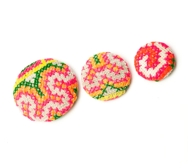 モン族の刺繍ボタン【直径:25mm 3個セット】 - ネオン系