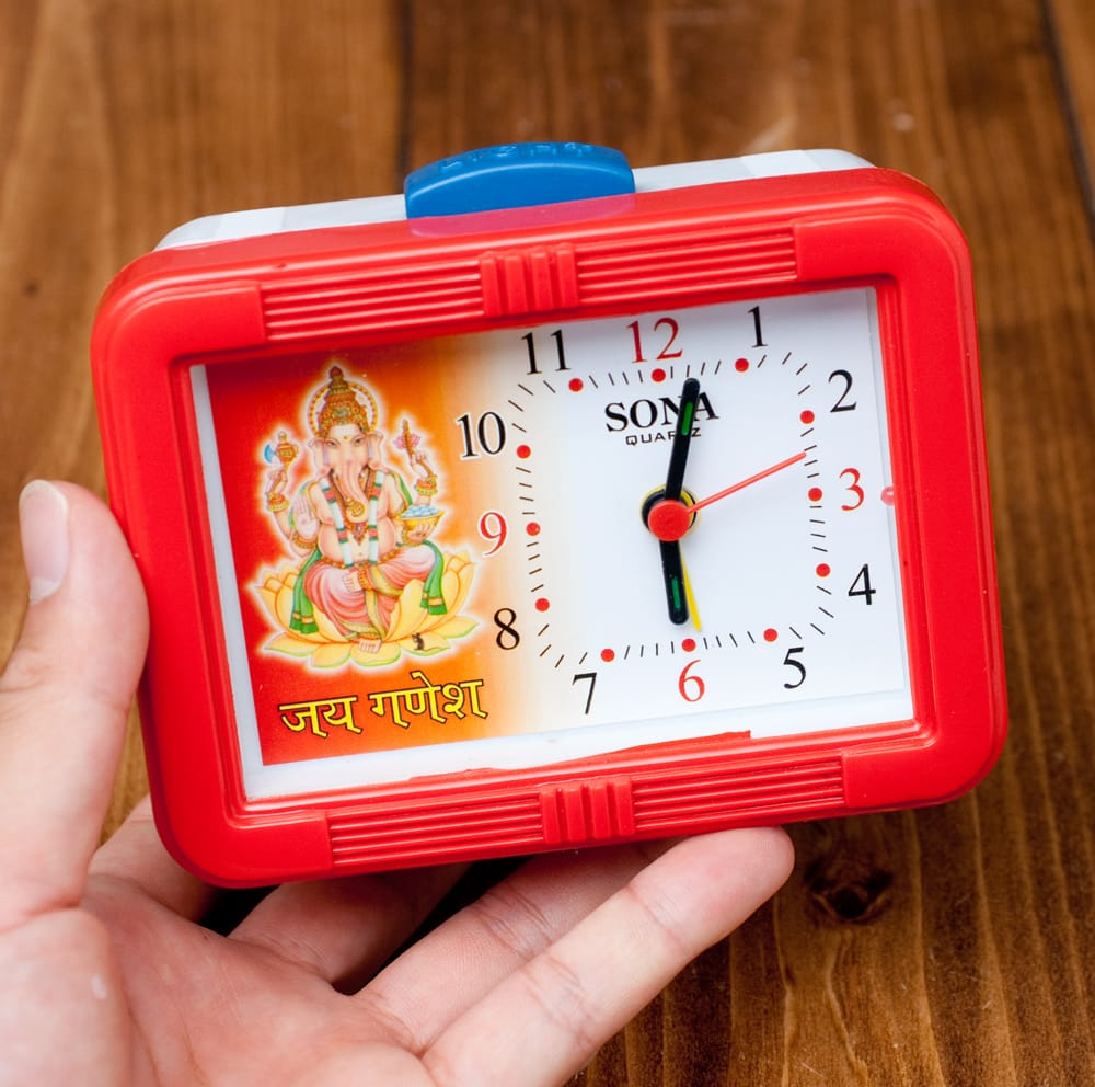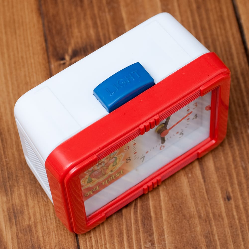 目覚ましの音がマントラって..とてもユニークで凄くインドっぽい感じ。目覚ましとして使うと正確に鳴らないと書いてあったので、可愛い時計として使用しながら..時々ですが、目覚ましの針をマントラが鳴る時間に合わせて、この賑やかなマントラ(何曲も入ってるので)を聞いてると何故か笑えてしまう..という特典付きの時計として楽しんでいます。