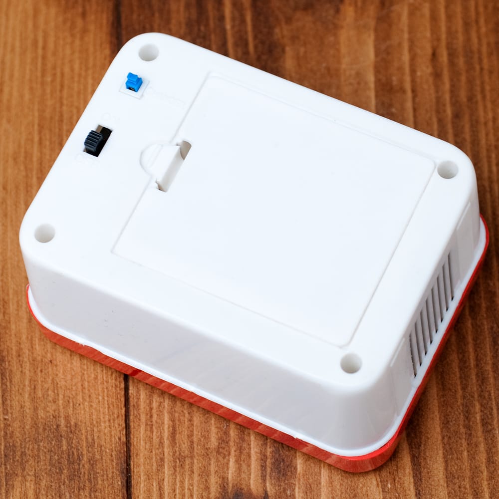 プラスチックや文字盤の印刷、配線コードむき出しのLEDライトなど、いつ壊れるかわからない、どこをとってもチープな感じに溢れています。