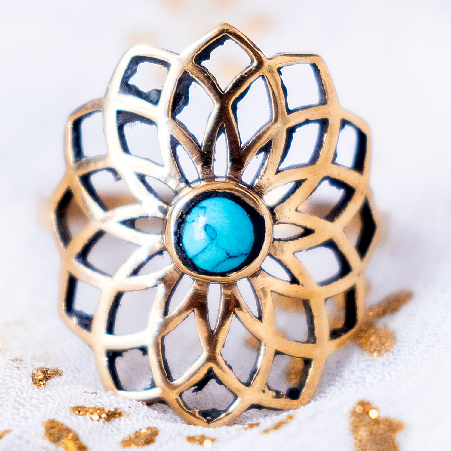 【安心のフリーサイズ】インドのペイズリー柄ゴールド天然石リング