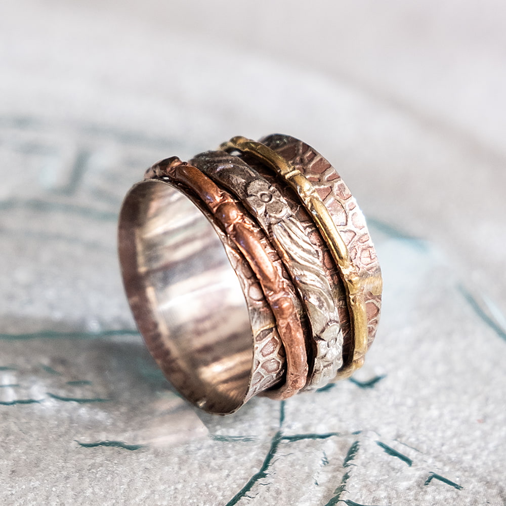 くるくる回る インド占星術のリング 指輪 回転リング3連