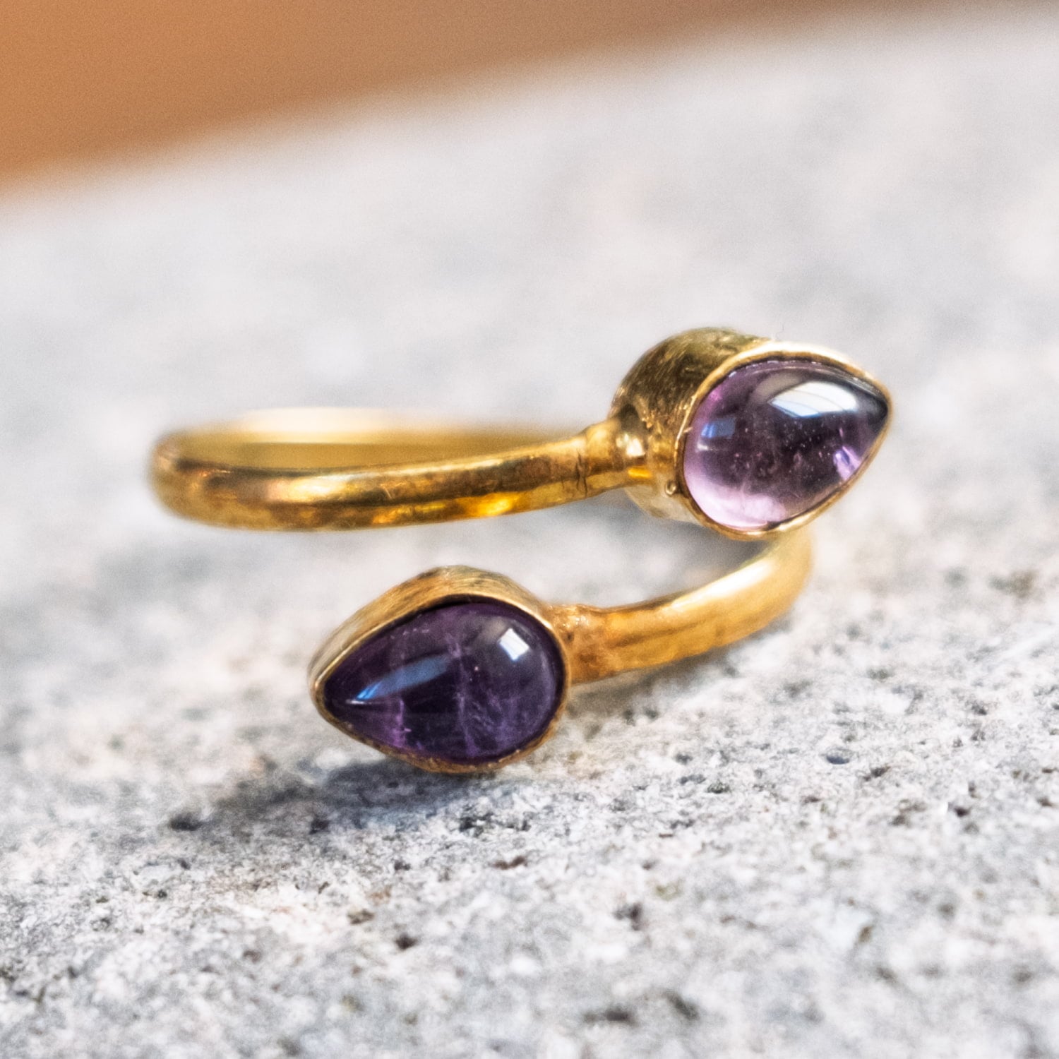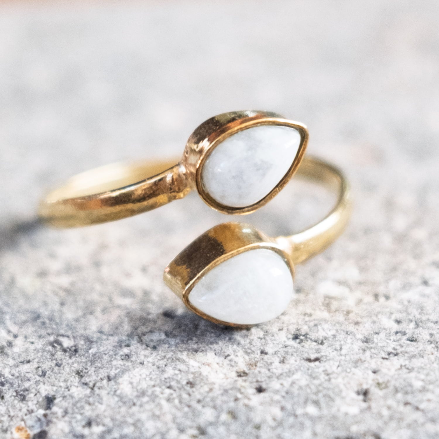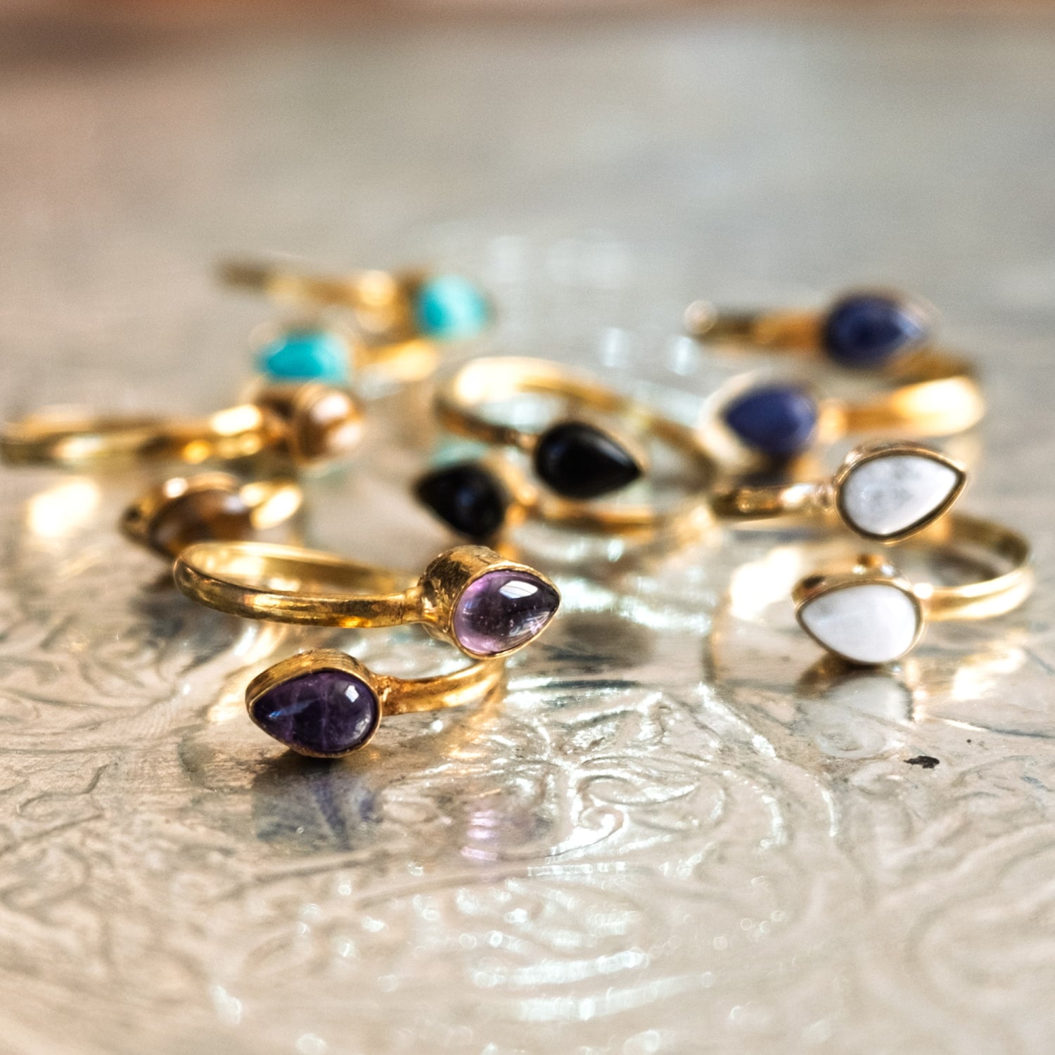 とてもシンプルな雫型の天然石リングです。シンプルなデザインが美しく、自己主張しすぎない柔らかいデザインがコーディネートに合わせやすく、日常的にお使いいただけます。ゴールドの品のあるインドらしい土台をベースに、天然石を埋め込んだアクセサリです。■安心のフリーサイズ