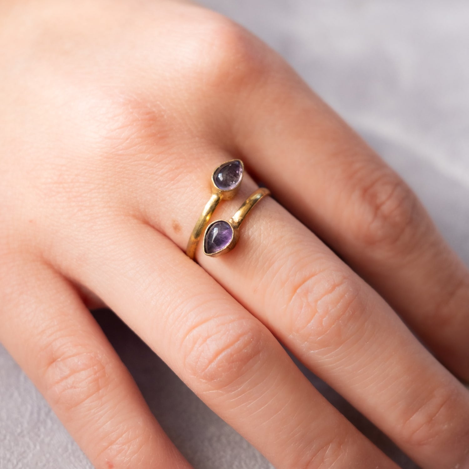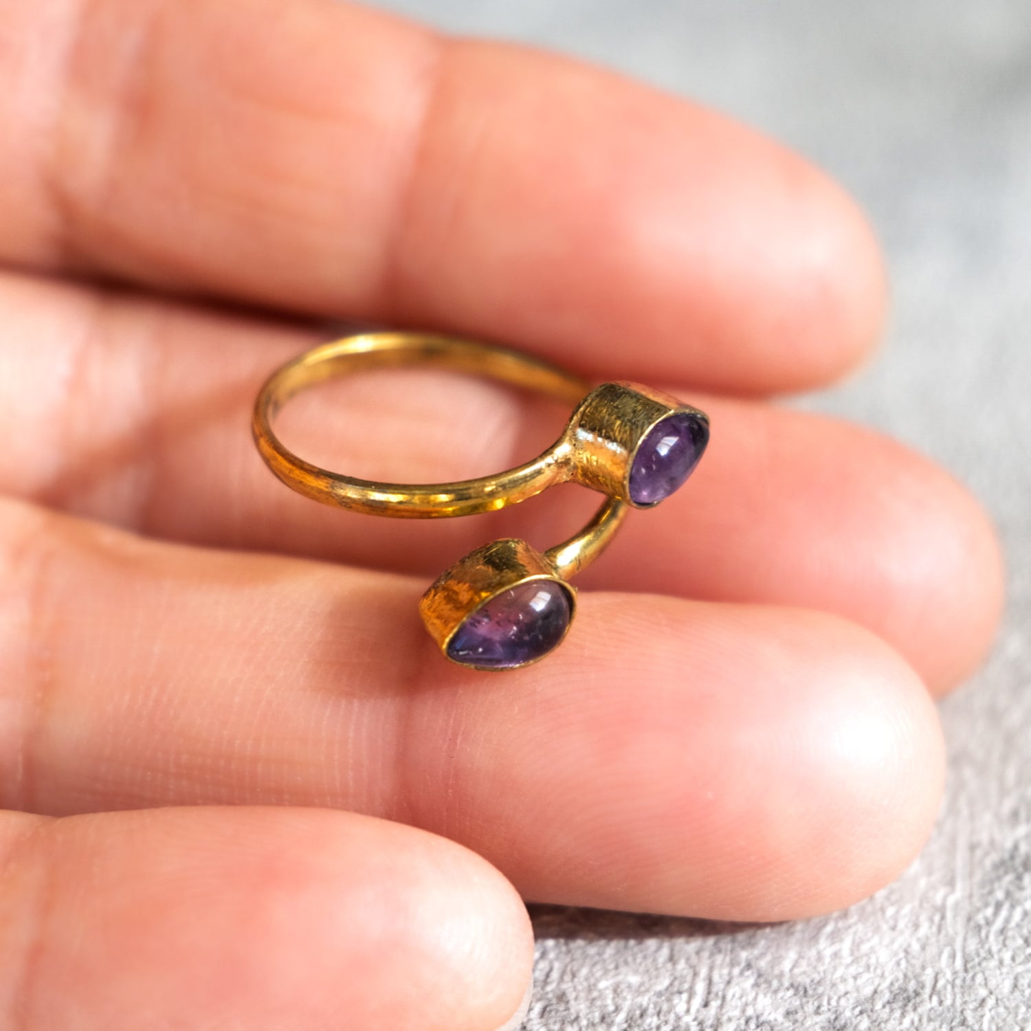 こちらはサイズの心配がいらないフリーサイズです。2連のようなデザインで広げたり狭めたり自由がきくのでご自身でのサイズ調整が可能です。気分に合わせてあわせる指を変えるのも自由自在です。■お色味には個体差があります