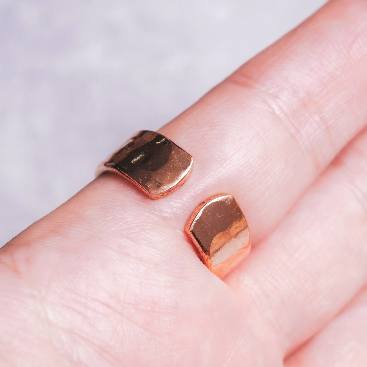 インドの純銅製リング 指輪 滑らかな多面カットデザイン フリーサイズ(17号以上) アーユルヴェーダやプージャで人気の銅 通販店