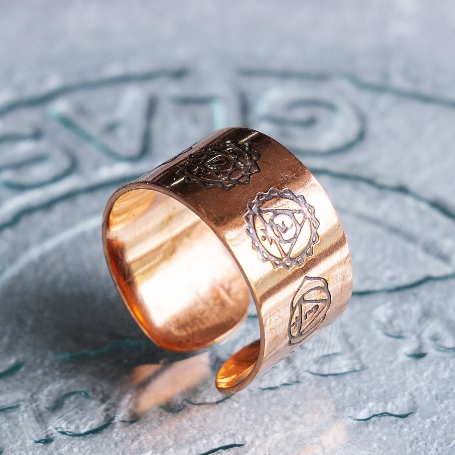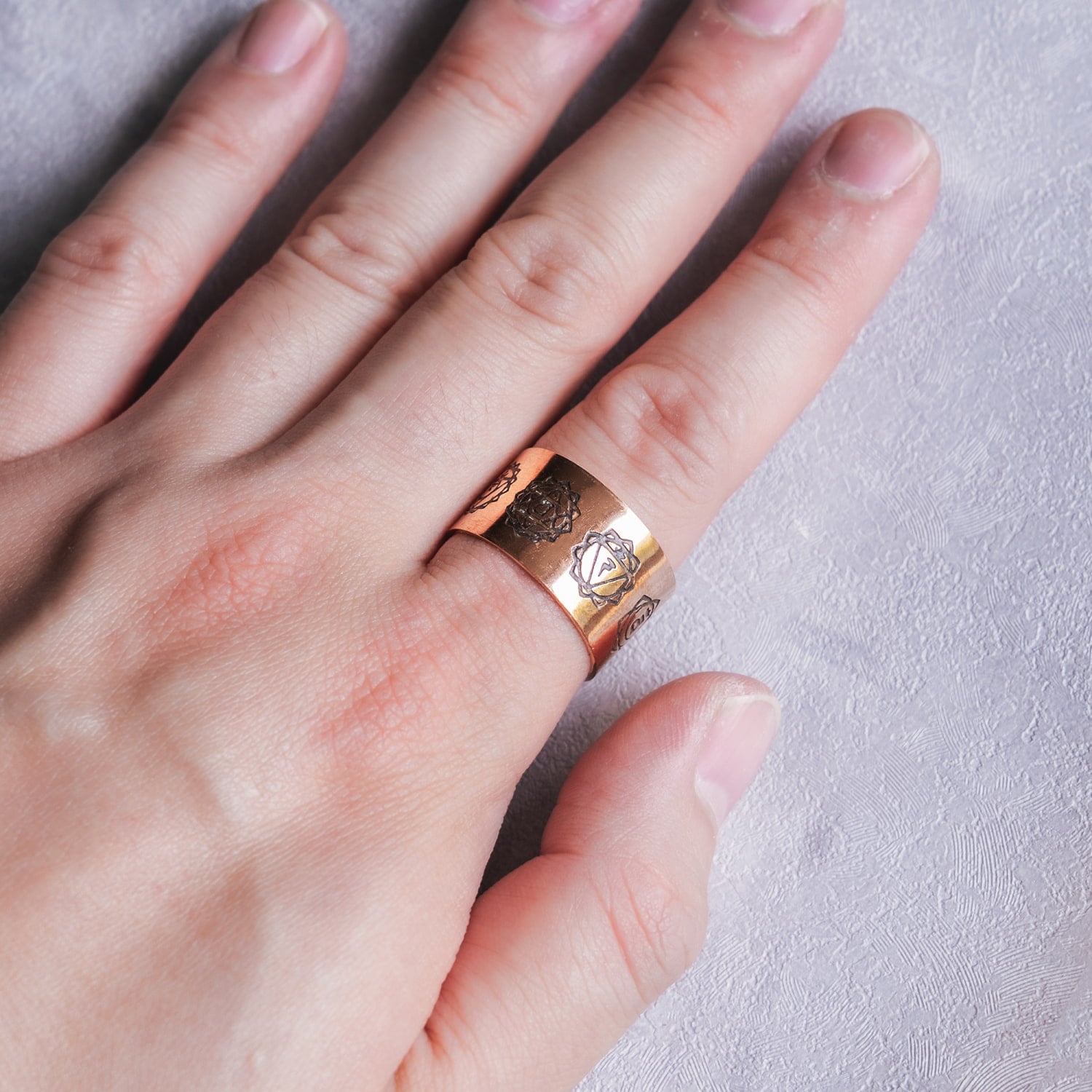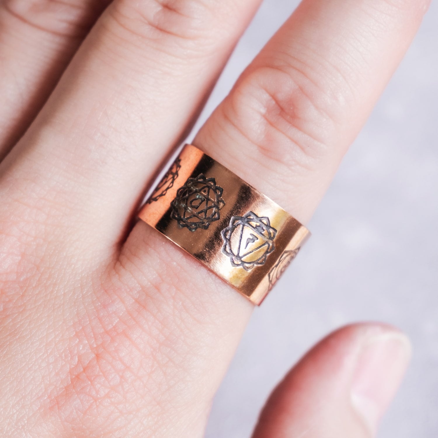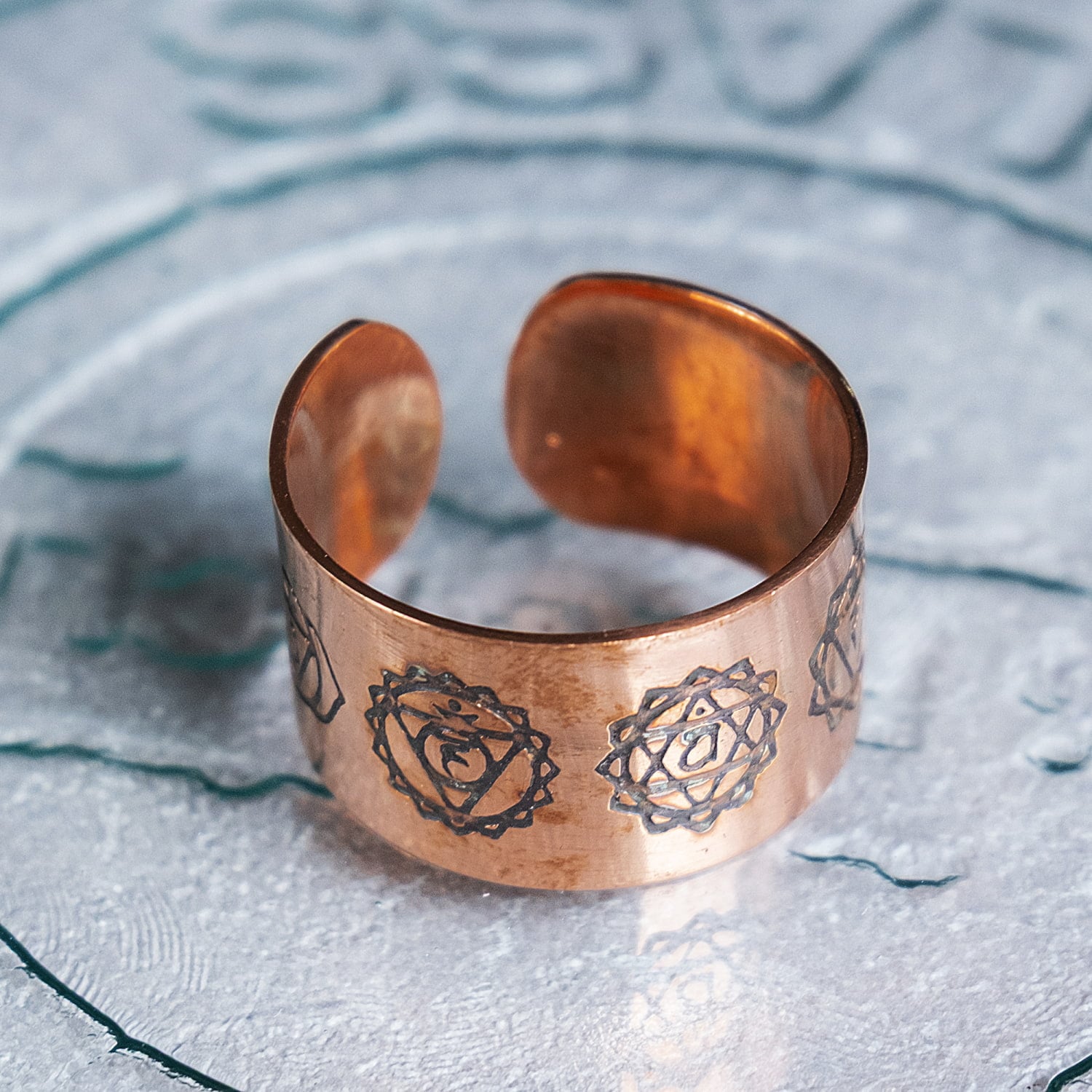 インドの純銅製リング 指輪 セブンチャクラのワイドリング フリーサイズ(17号以上) アーユルヴェーダやプージャで人気の銅 通販店