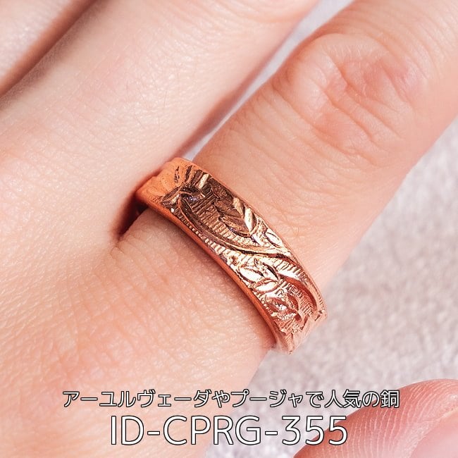 インドの純銅製リング 指輪 更紗デザイン フリーサイズ(22号以上) アーユルヴェーダやプージャで人気の銅