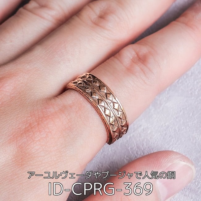 ■インドの純銅製リング 指輪 スモールダイヤパターン マグネット2個内蔵 フリーサイズ(17号以上) アーユルヴェーダやプージャで人気の銅のデータ■