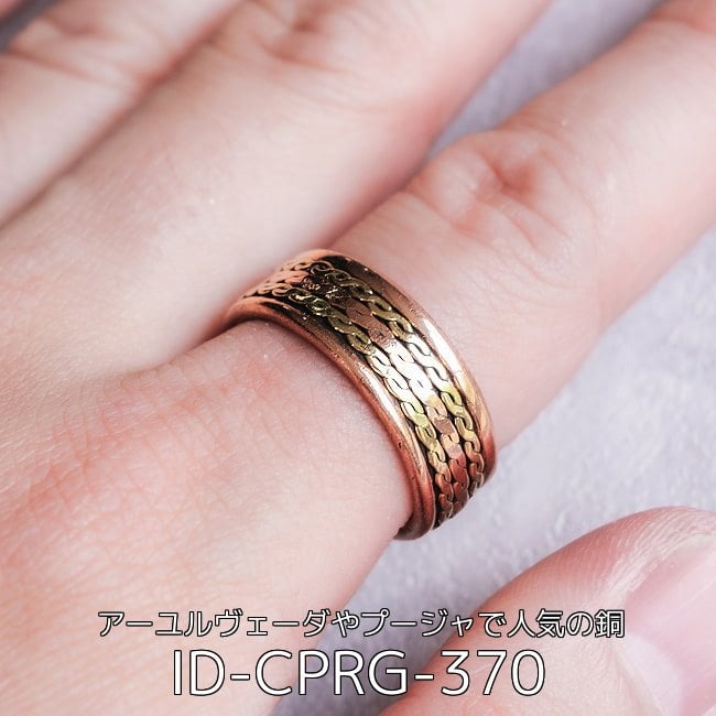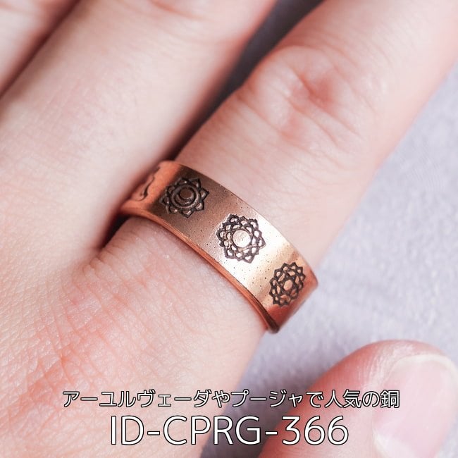 ■インドの純銅製リング 指輪 セブンチャクラのワイドリング フリーサイズ(17号以上) アーユルヴェーダやプージャで人気の銅のデータ■