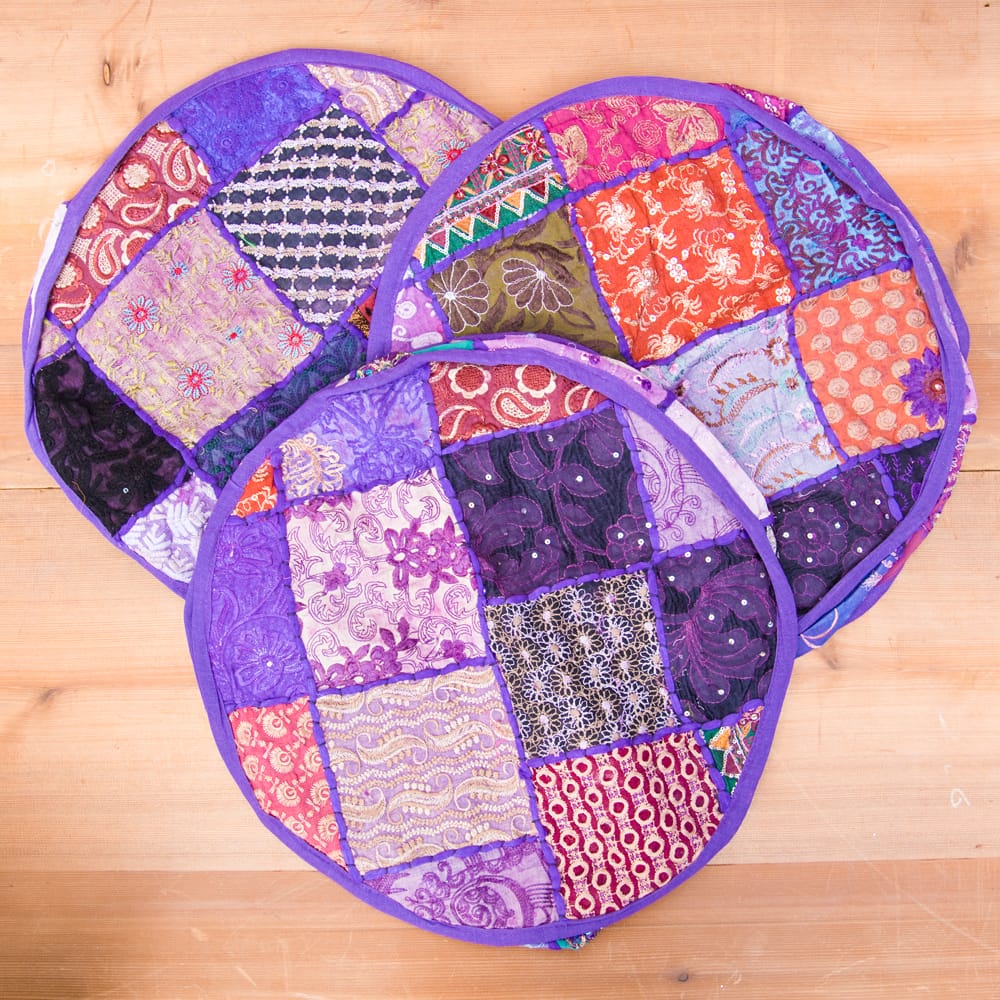 パッチワークを手作業で作っているので同じデザインのカバーは1つもございません。 オンリーワンなデザインをお楽しみください。 (お届けする柄はアソート(ランダム)でのお届けとなります。)| 色 | 紫 |