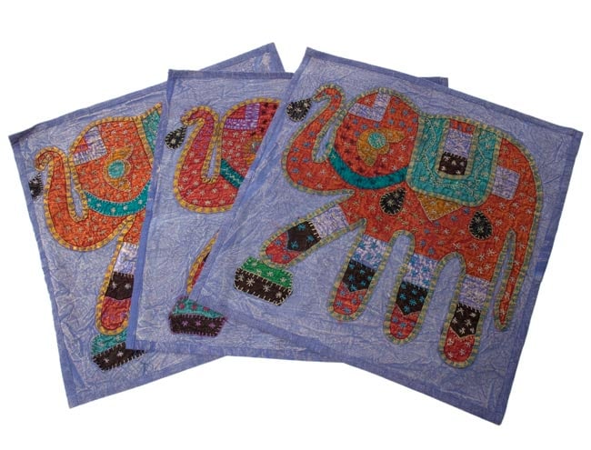 アップリケの象さんは、一枚一枚手で縫われていますので、こちらのように、ちょっとずつデザインの異なる一品物となります。