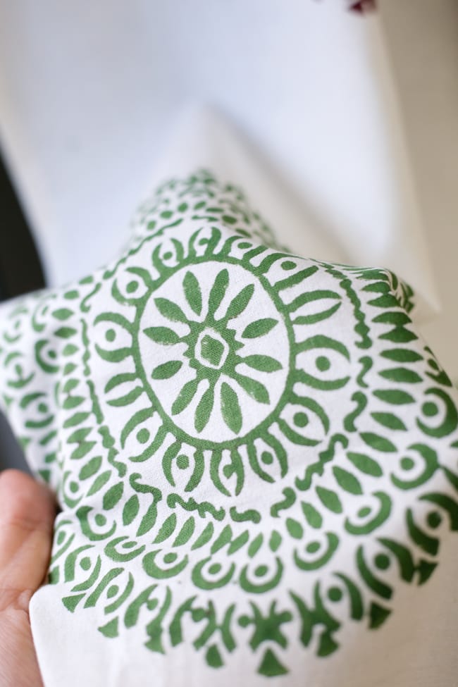 ウッドブロックプリントには機械では出せない人の手による温もりがあり、プリントがずれていたり、かすれているのも、むしろいい味に感じてしまいます。素朴な味わいをご堪能下さい。