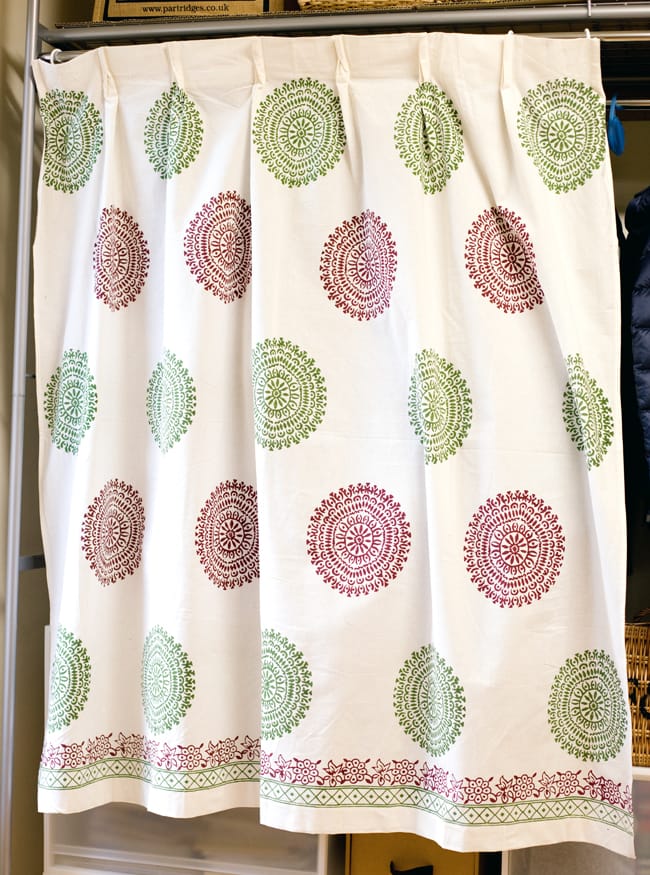 | 備考 | 一般的なカーテンフックで取り付けられますが、あまり太いタイプだと入らないことがございます。また、カーテンフックは付属いたしません。インド綿の為、若干のほつれや、染みなどがあることがございます。生地が裁断された部分により、商品画像とは模様の位置などが異なる場合がございます。また、基本的には人の手で作られているハンドメイド製品の為、サイズ等は表記と若干相違することがございます。タグには100cm×135cmと記載がございますが、平均的なサイズを記載しております。予めご了承くださいませ。 |