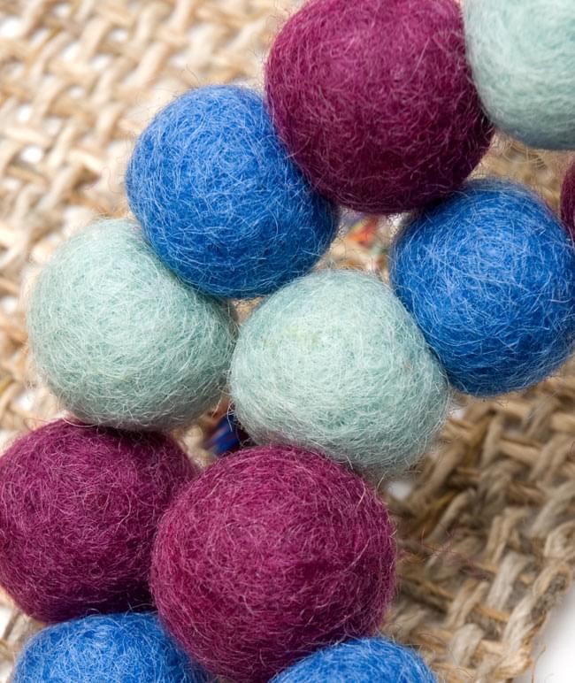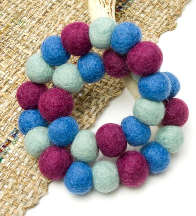 また、こちらのフェルトボールは、耐久性と伸縮性、更にワンちゃんが着けていて苦しくならないよう、ポリウレタン繊維を束ねて作られた、弾性糸を二重にして繋いでいます。